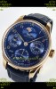 IWC Super Clone Portuguese Perpetual Calendar Rose Gold Blue Dial Replica Watch