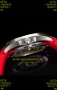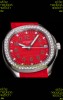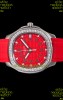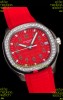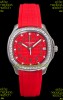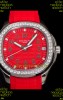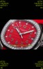 Red Colored Textured Dial with Date Window at 3 O'Clock. Diamonds Bezel