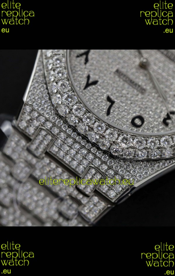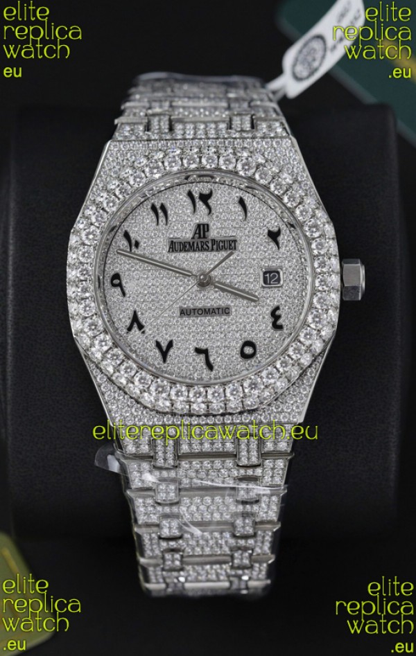 Audemars Piguet Royal Oak 15400 Iced Out Arabic Dial in Stainles Steel Casing Swiss Replica Watch