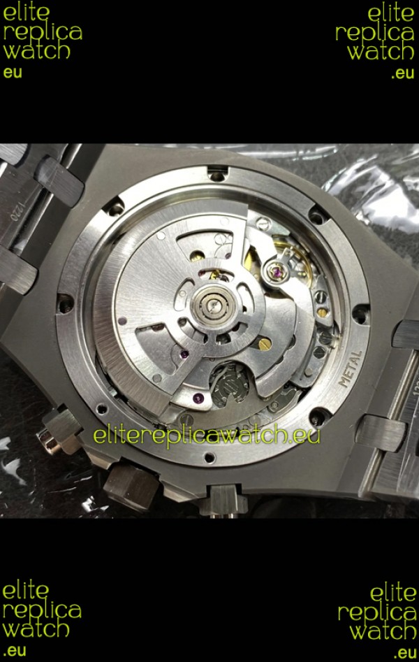 Machinery Layout exactly like Audemars Piguet 3126 Calibre Movement used in Authentic Audemars Piguet Offshore Watches. Built on Genuine Swiss 7753 Movement architecture with Functional stopwatch feature like the authentic with Seconds hand running at the 12 o clock Sub Dial