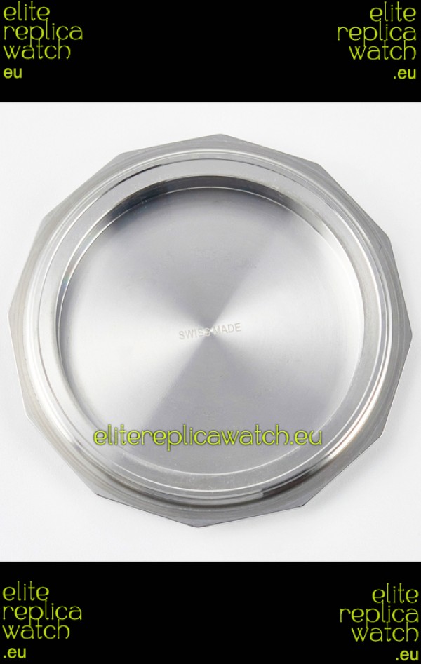 Genuine Swiss 7750 Movement which is best up to date. 28,800 Vibrations Per Hour . Platinium Plated Rotor Plate on Movement. Movement Decorated to resemble P.900 Movement