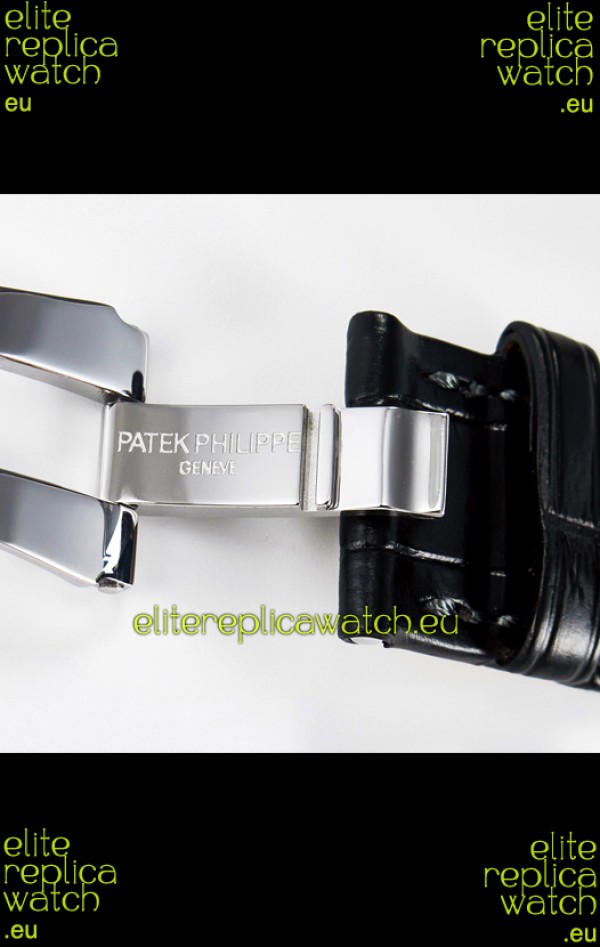 Genuine Leather Strap in Black with Patek Philippe Signature Clasps complete with all markings and engravings
