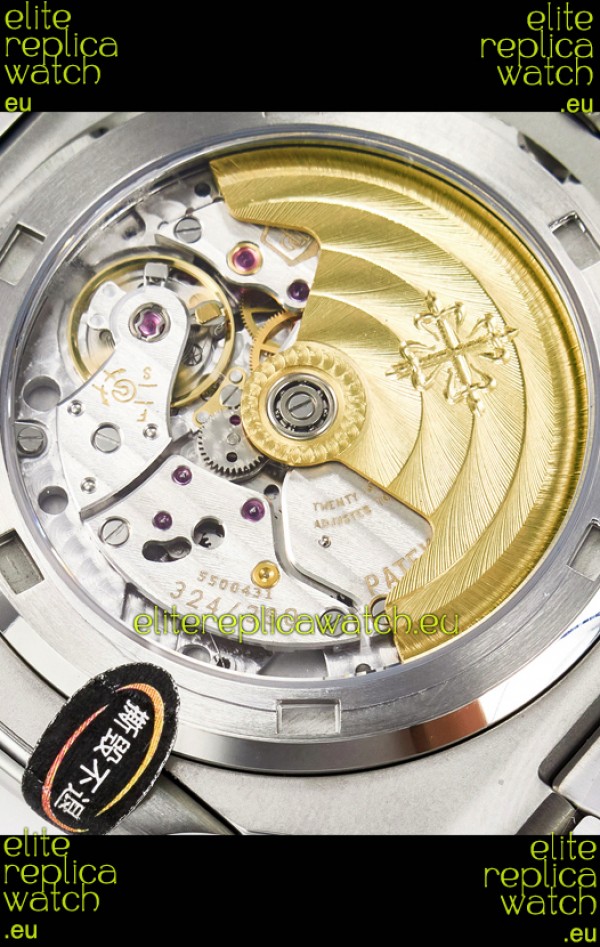 Genuine Swiss ETA9015 Movement Modified to Resemble the PATEK 324SC Movement. Aligned exactly like the Original Patek Philippe Movements with Updated Rotor