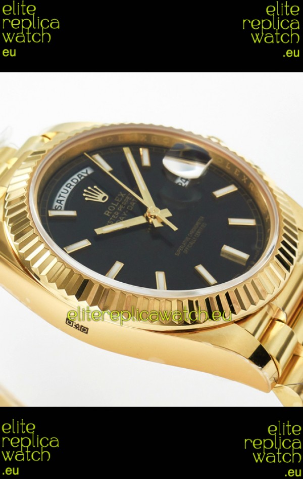Rolex Day Date Super Clone 18K Yellow Gold Watch 40MM - Black Dial 1:1 Mirror Quality