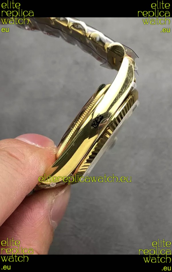 18K Yellow Gold Plating on 904L Stainless Steel New Design President Strap with Folding Clasps complete with Rolex Markings and Engravings