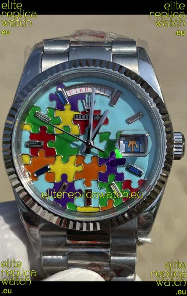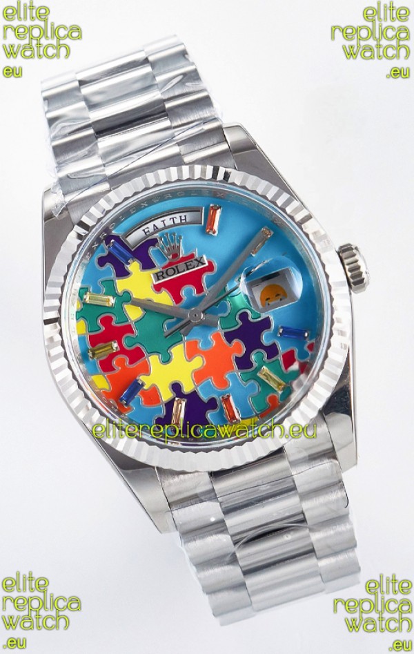Rolex Day Date Emoji Jig-Saw Puzzle Stainless Steel Casing Swiss Replica Watch
