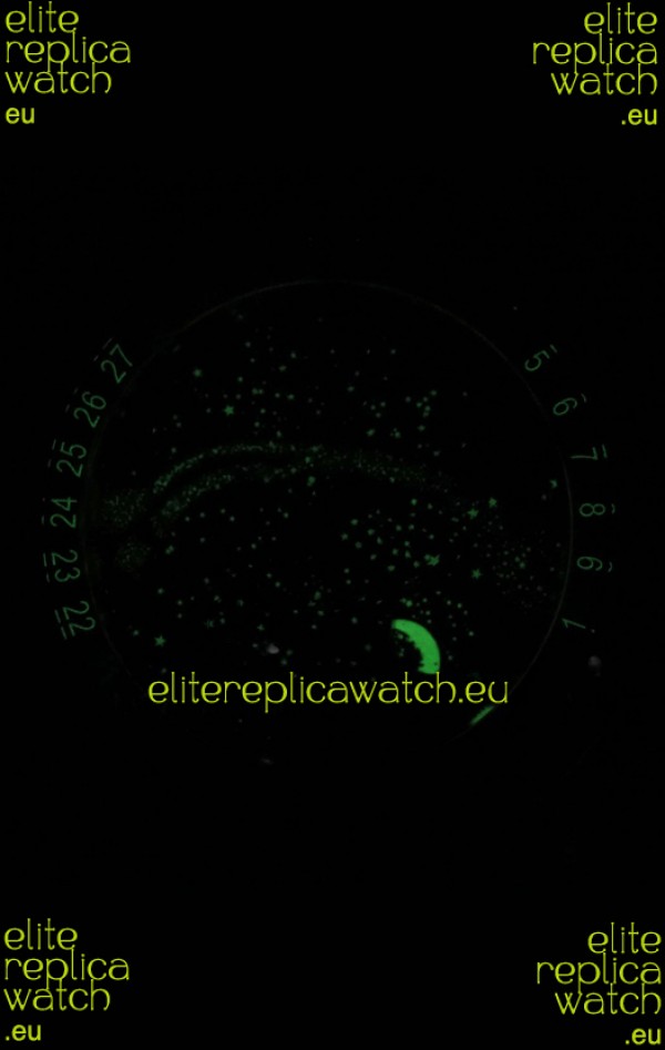Black Sky Moon Celestial Dial with Date Numerals around the Dial. Sapphires Bezel