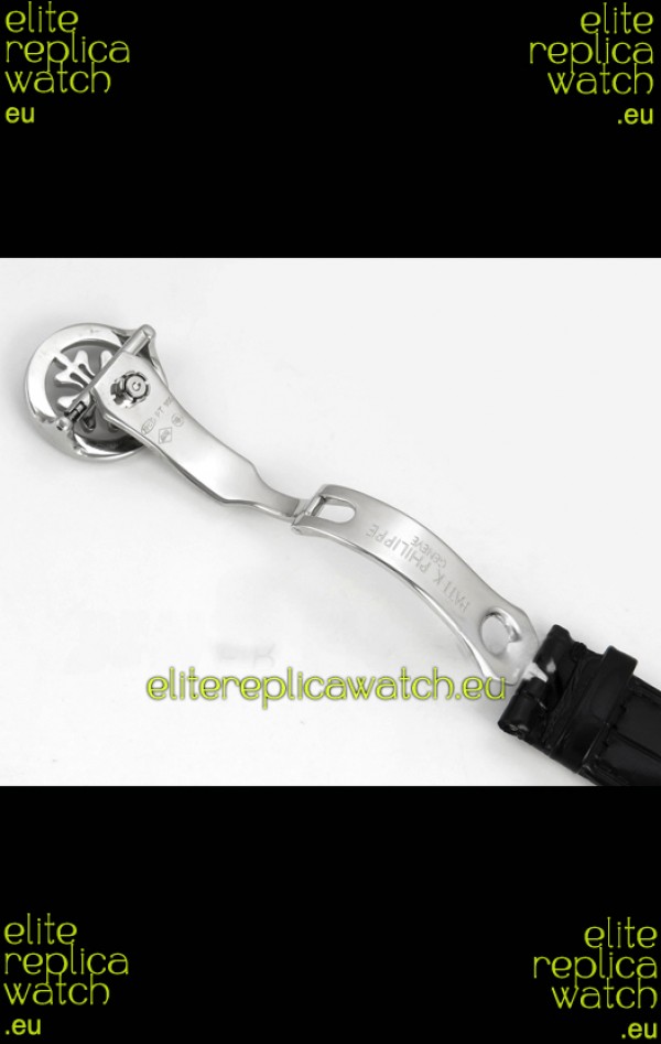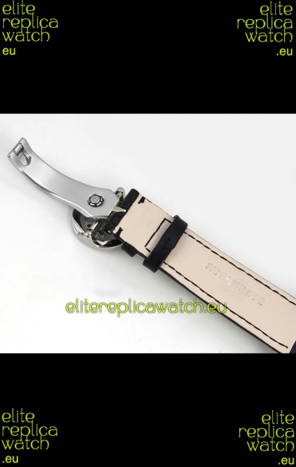 Genuine Leather Strap with Steel Folding Clasp complete with Patek Philippe Markings.