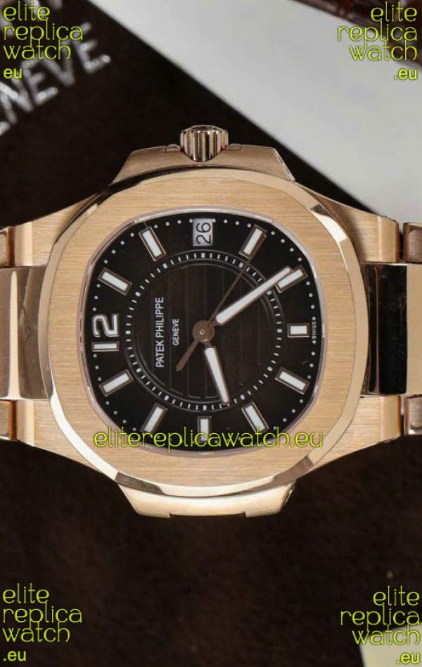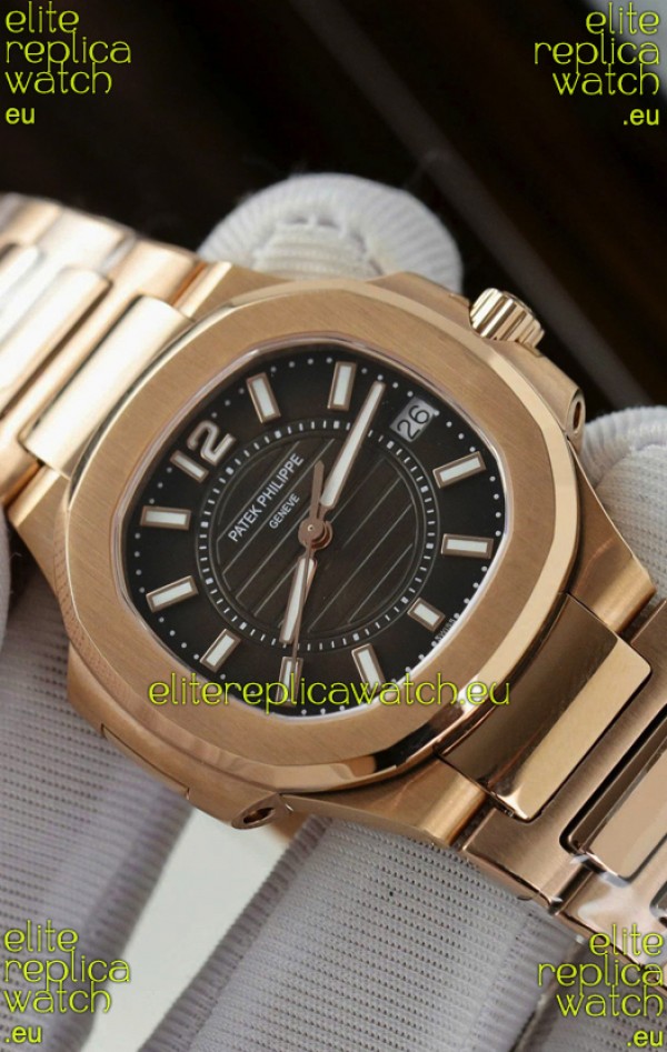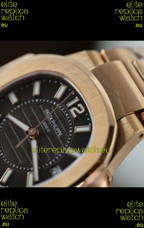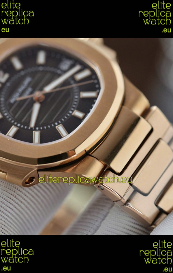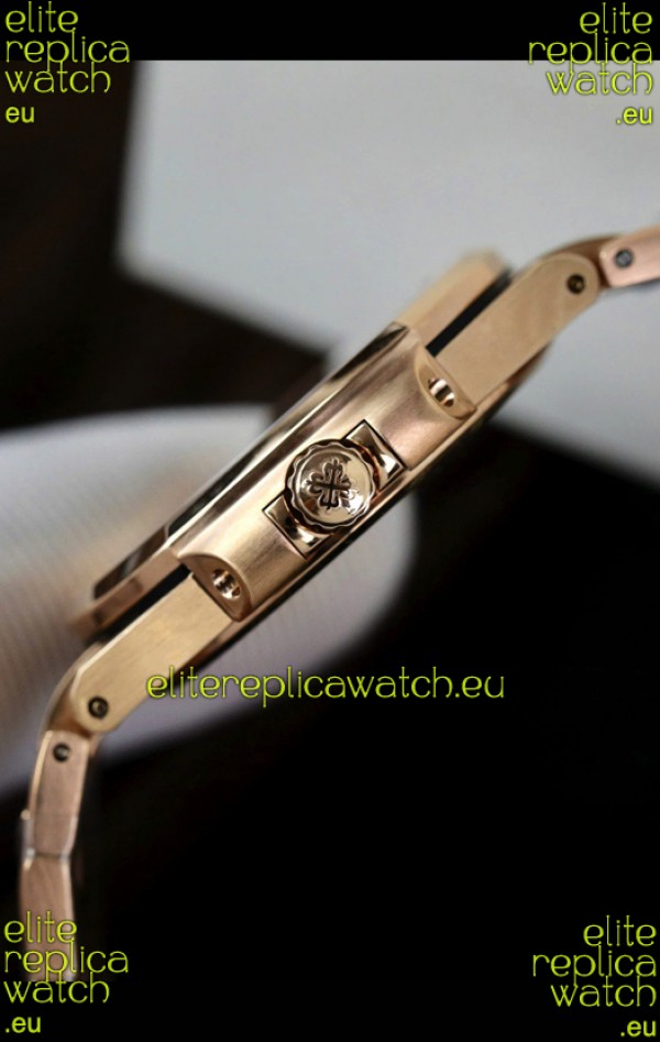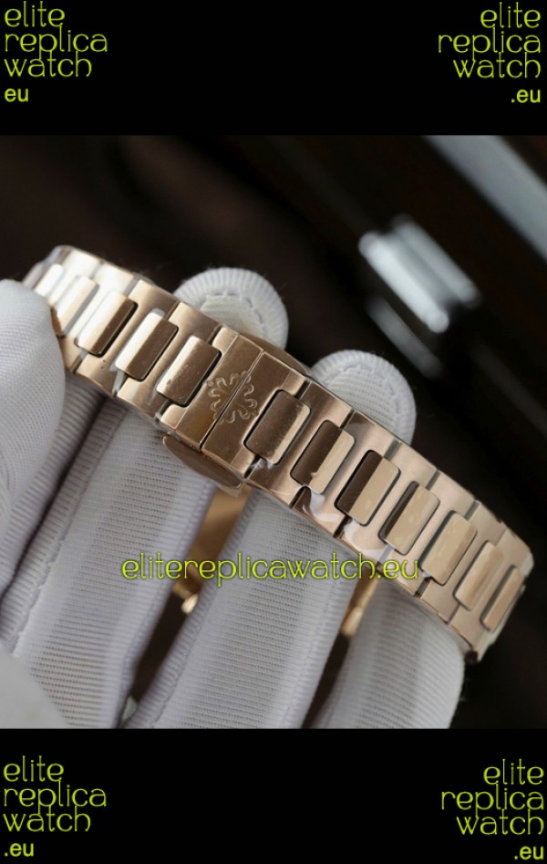 Rose Gold Plating on 904L Stainless Steel Strap with Steel Folding Clasp complete with Patek Philippe Markings.