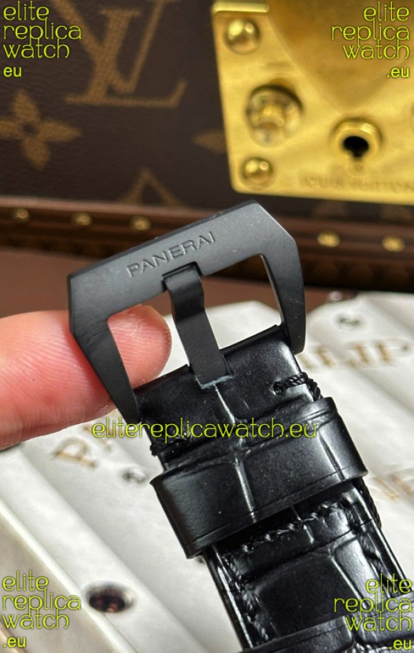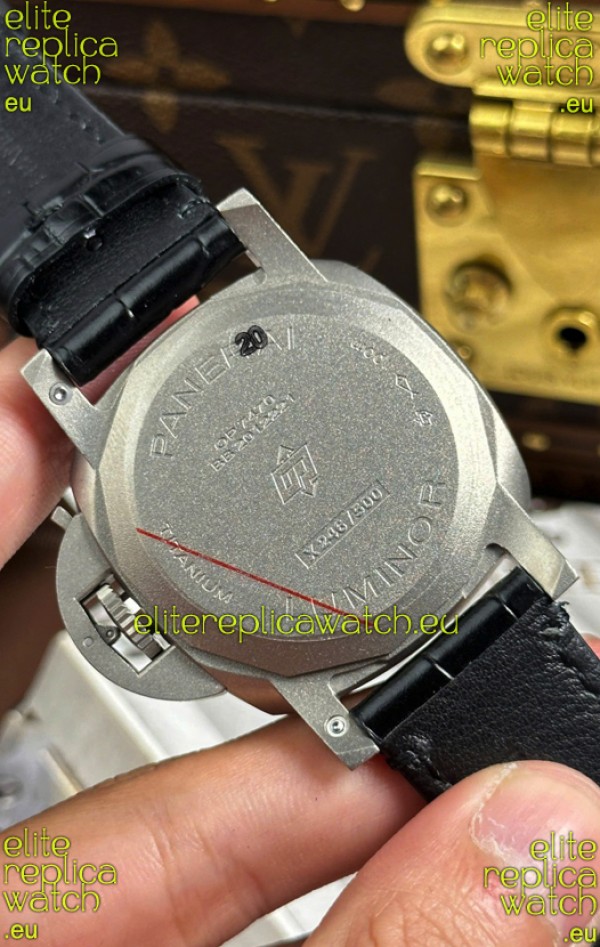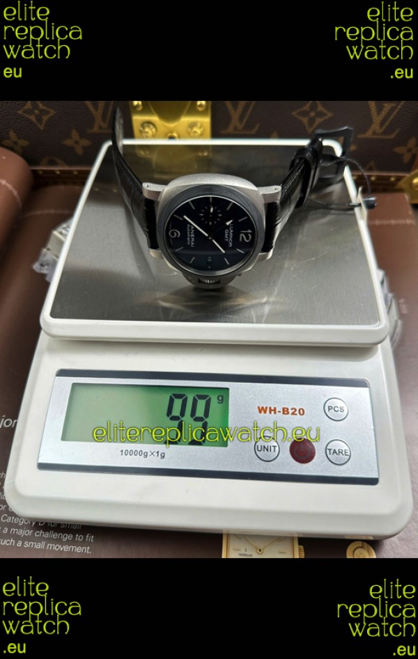 Genuine Swiss Modified 7750 movement Reassembled to resemble the P9010 Movement. Bridges and Rotor Decorated to resemble the Calibre 9010 Movement by Panerai