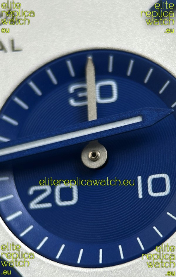 White Dial with 3 Functional Sub Dials. Sub dial at 6 O'clock moves along with the Hour Hand which is slightly different when compared with the originals