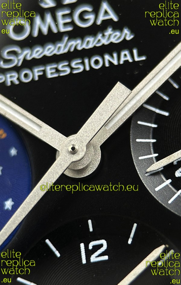 Black Dial with 3 Functional Sub Dials. Sub dial at 6 O'clock moves along with the Hour Hand which is slightly different when compared with the originals