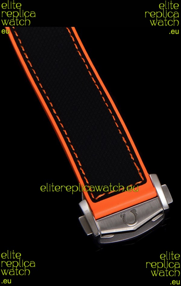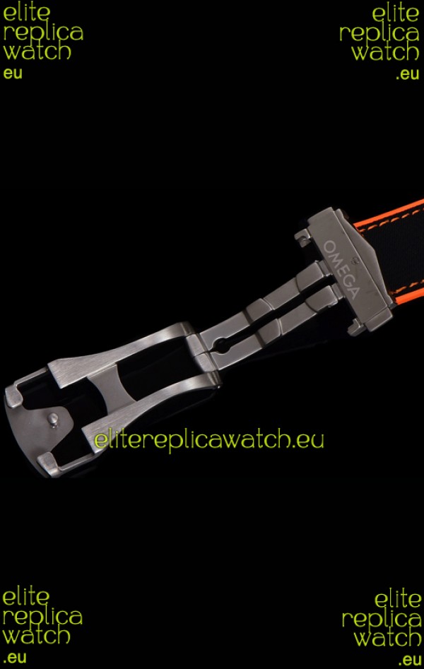 Black Rubber Strap with Omega Styled Folding Clasps complete with Omega Markings and Engravings