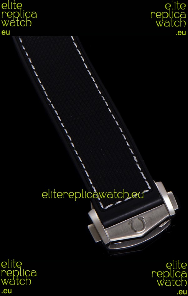 Black Rubber Strap with Omega Styled Folding Clasps complete with Omega Markings and Engravings