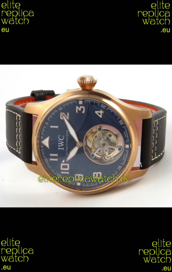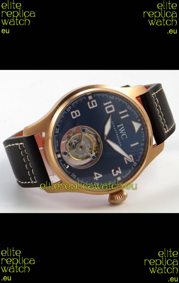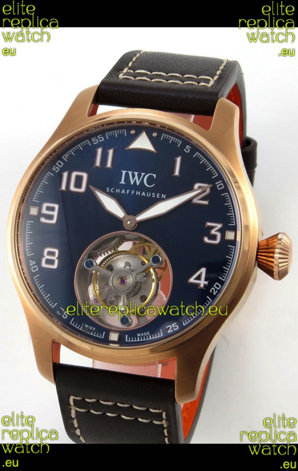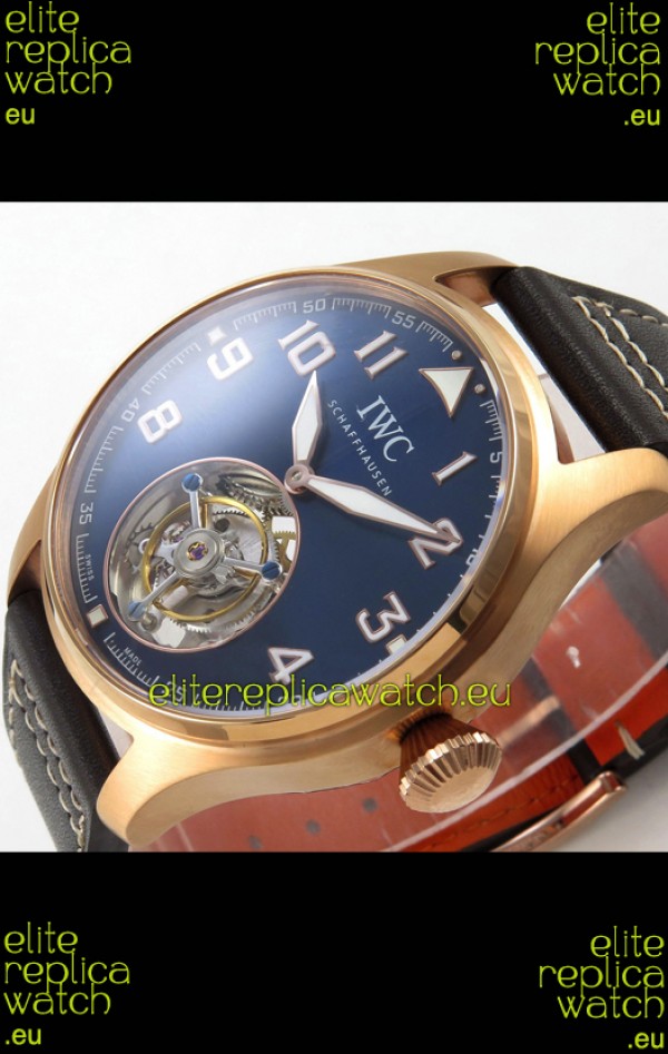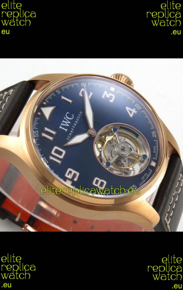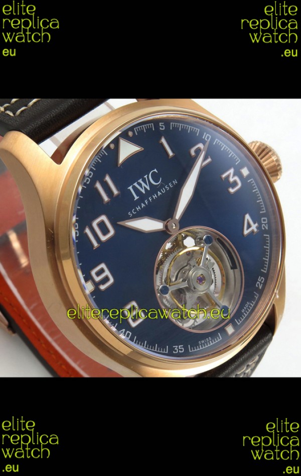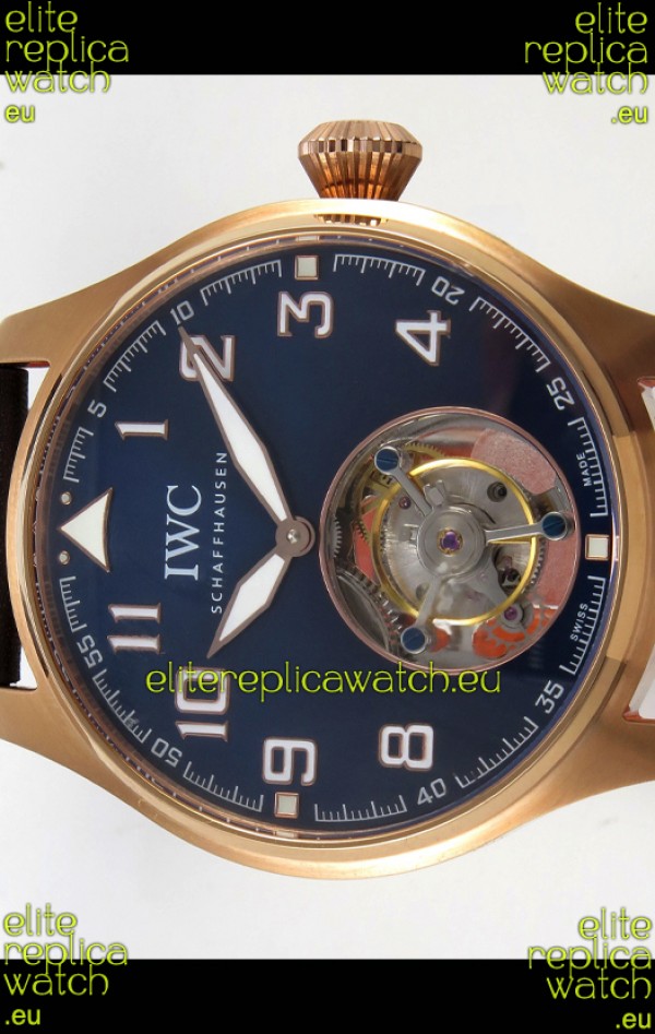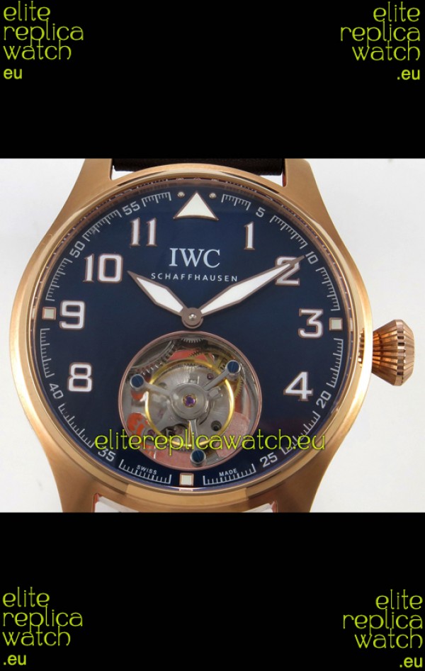 IWC Super Clone Portugese Hand-Wound Genuine Tourbillon Blue Dial Rose Gold Casing Watch