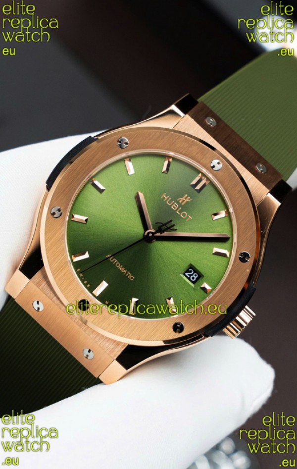Hublot Super Clone Classic Fusion Rose Gold Green Dial 42MM Watch