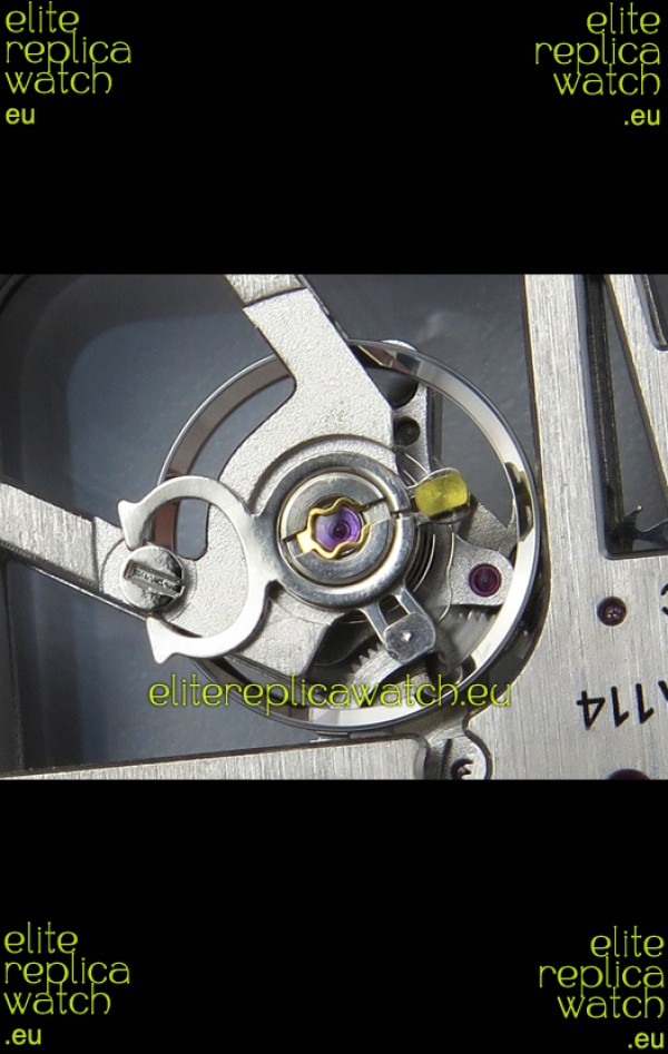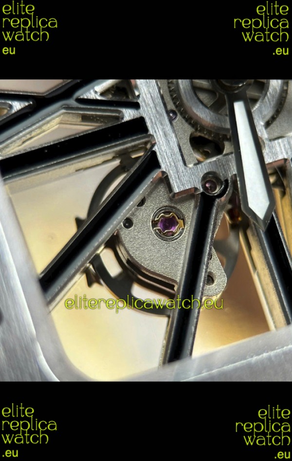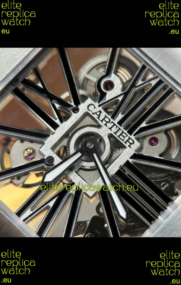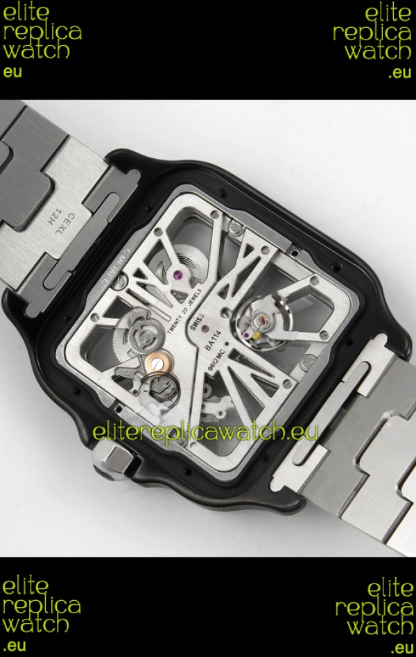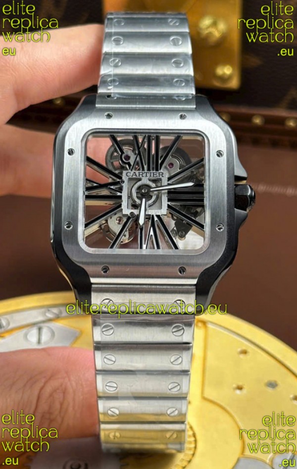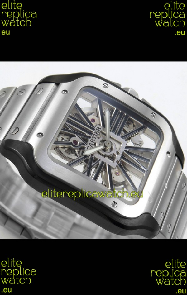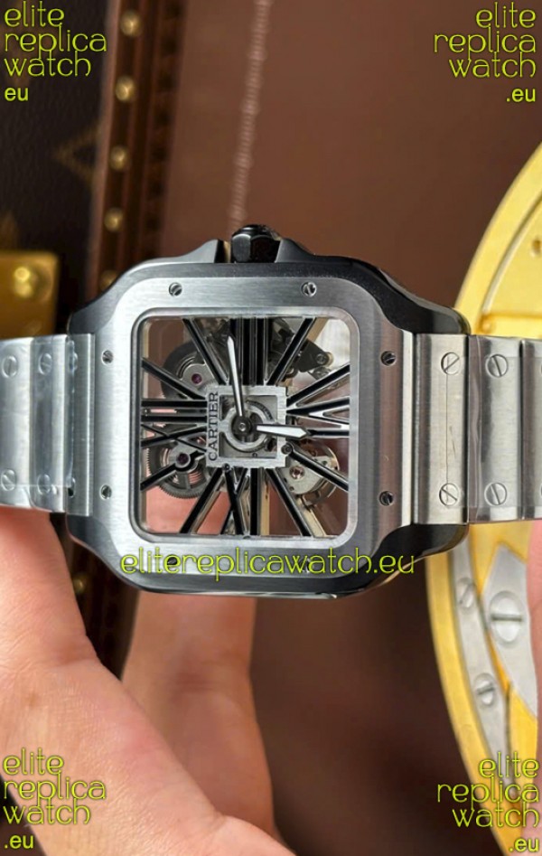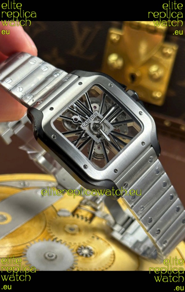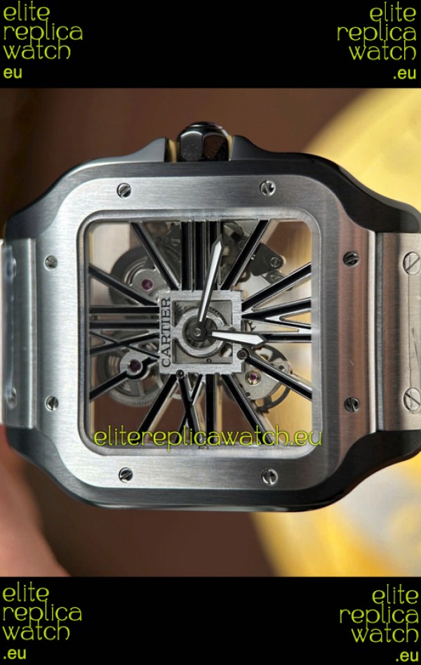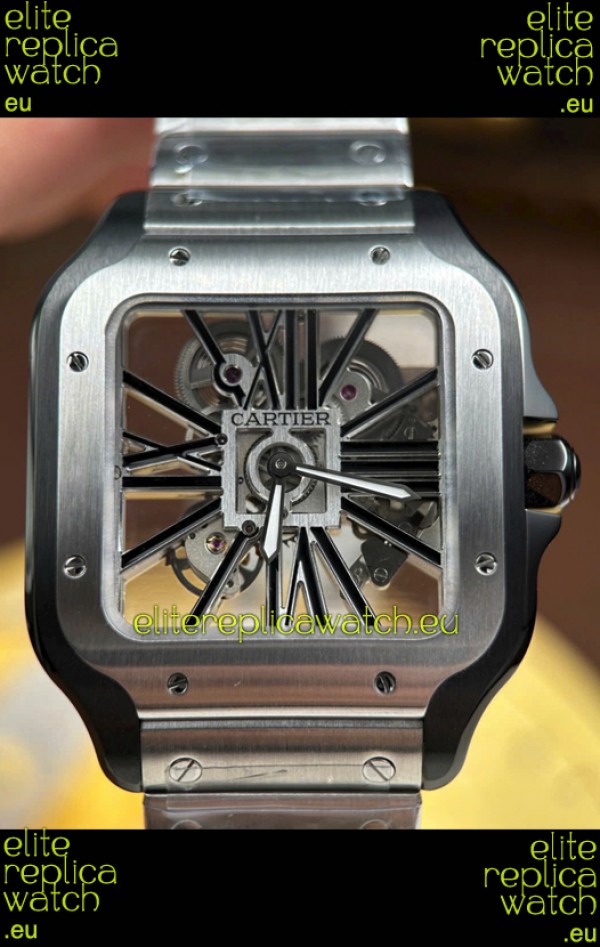 Santos De Cartier Super Clone Watch in Skeleton Dial Brushed DLC Coated Steel Casing Watch