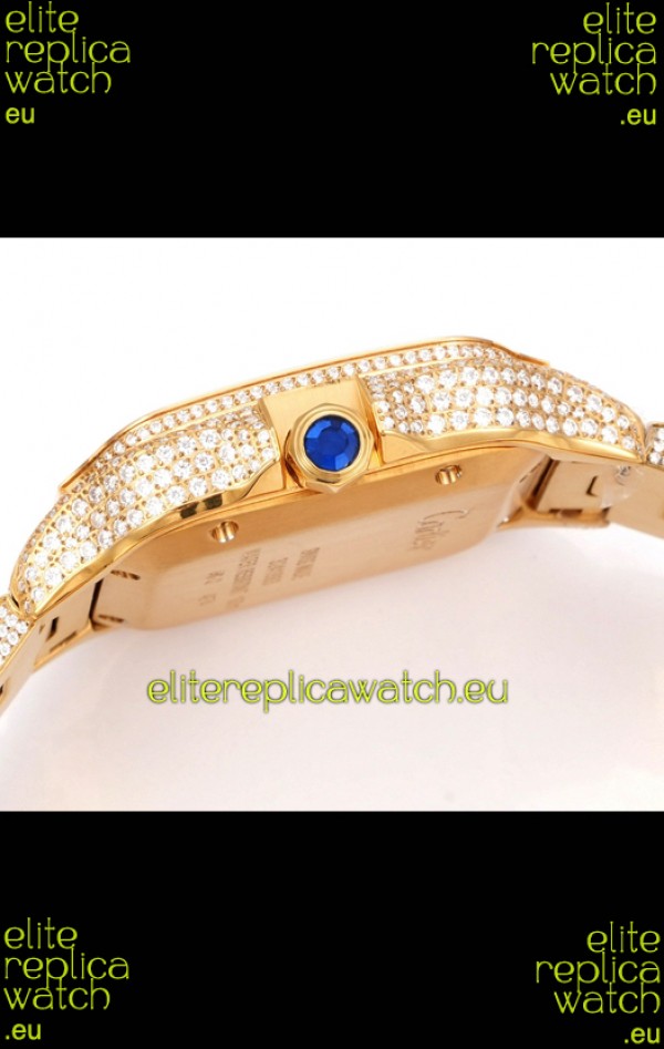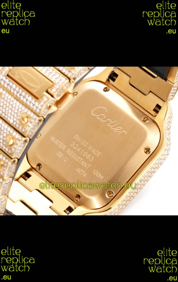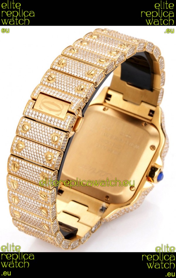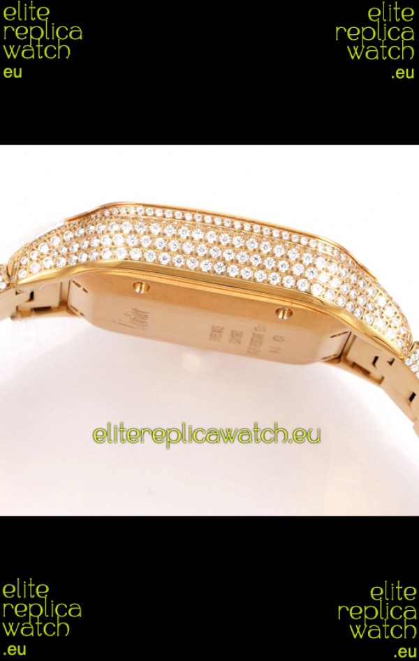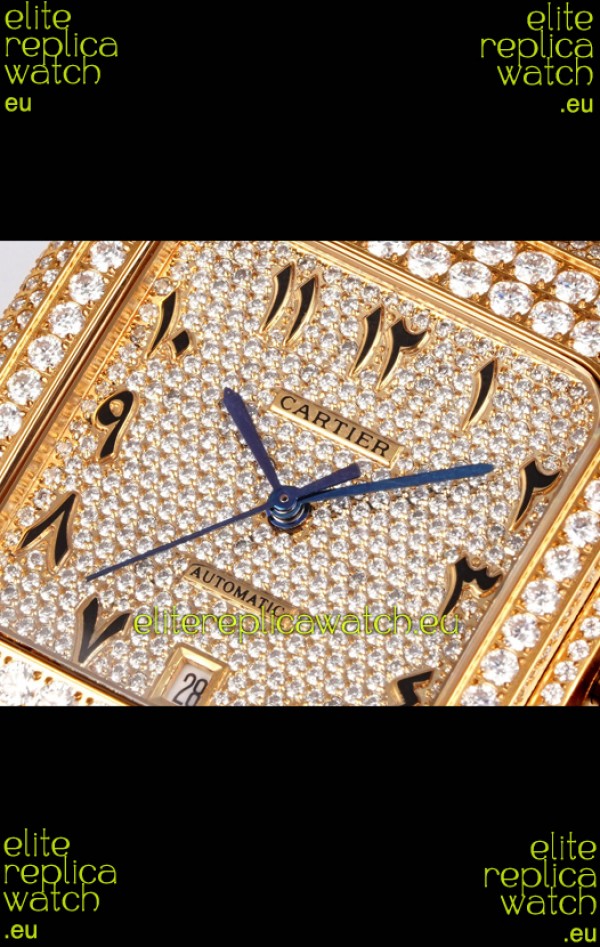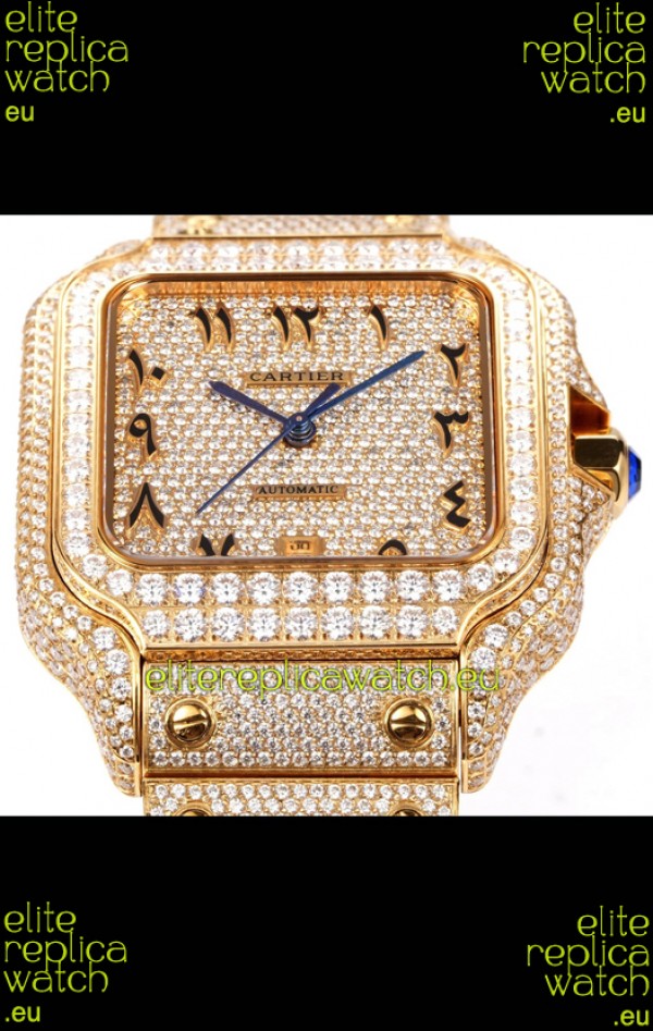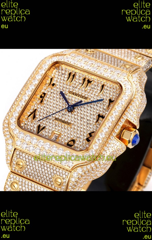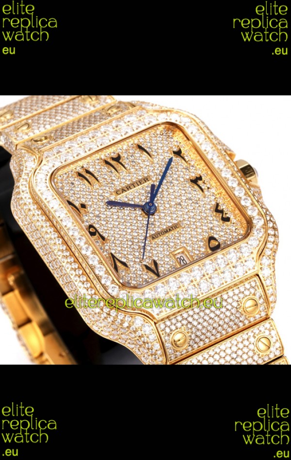 Cartier "Santos De Cartier" Yellow Gold W/ Diamonds Arabic Dial 1:1 Mirror Replica - 40MM - Genuine Diamonds