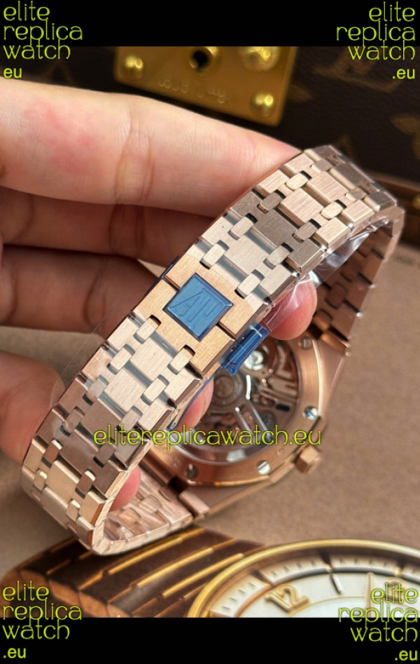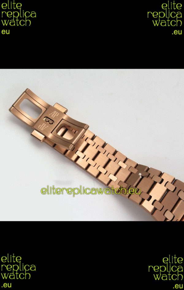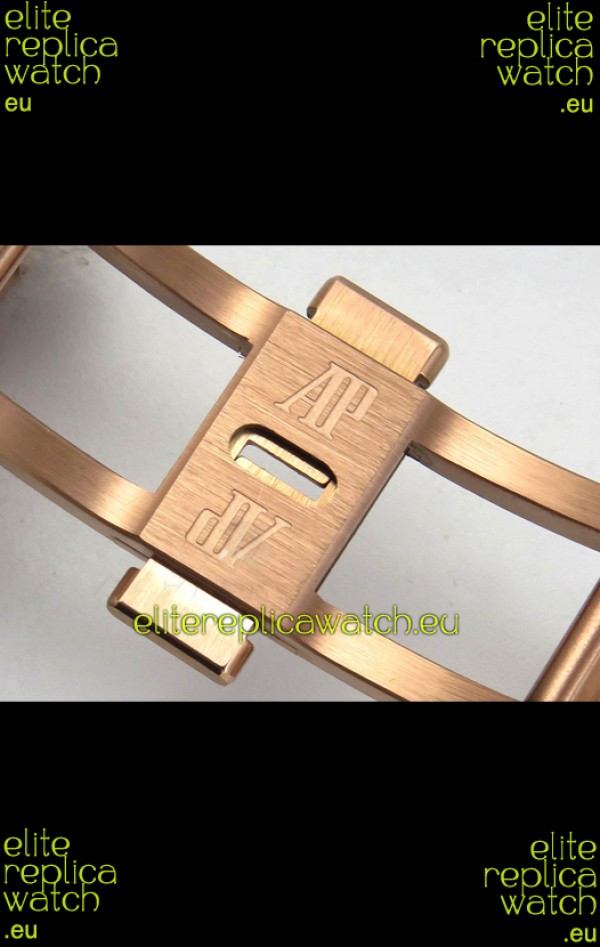 Rose Gold Plating on 904L Stainless Steel Strap complete with Audemars Piguet Markings and Engravings with AP Signature Clasps