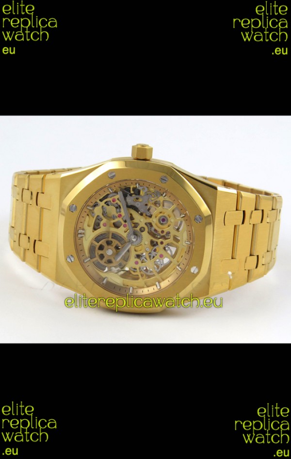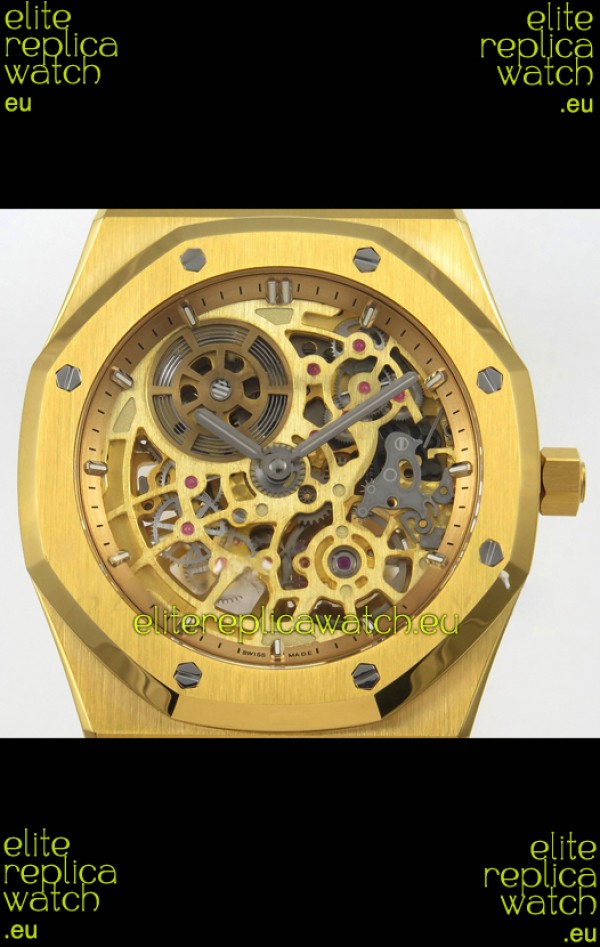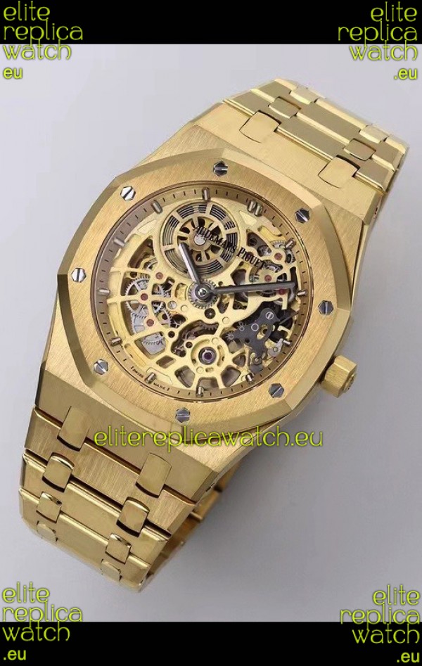 18K Yellow Gold Plating on 904L Stainless Steel Strap linked with Screws complete with AP Markings and Engravings