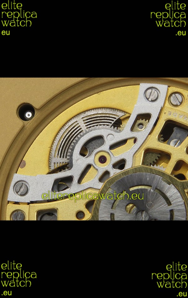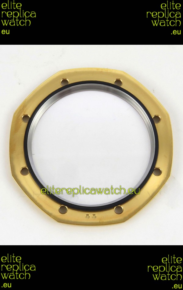 18K Yellow Gold Plating on 904L Stainless Steel Case with complete markings/engravings as per the originals.