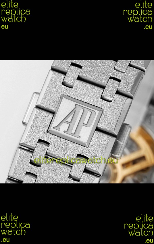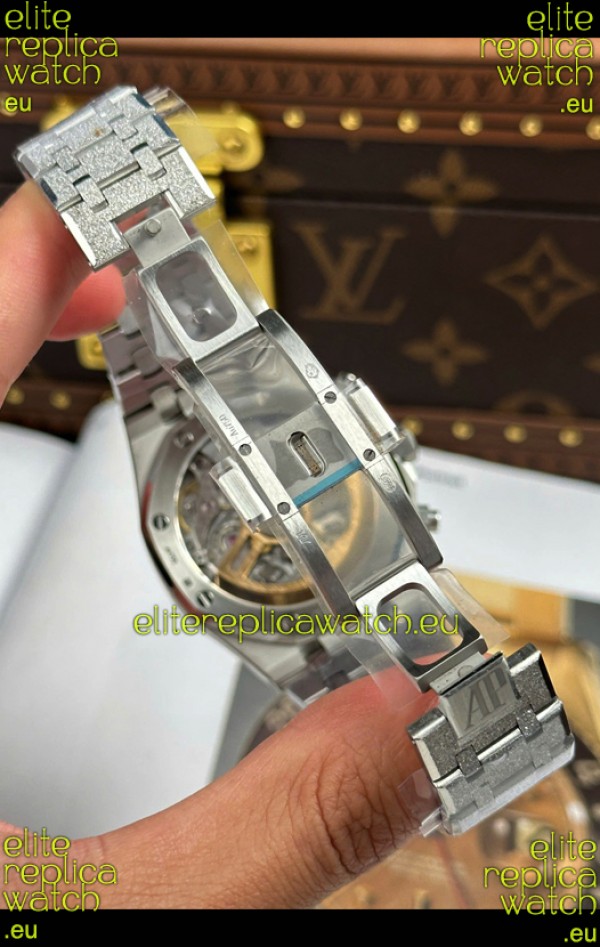 Frosted White Gold Plating on 904L Stainless Steel Strap completed with AP Markings and Engravings as per the originals and AP Folding Clasp