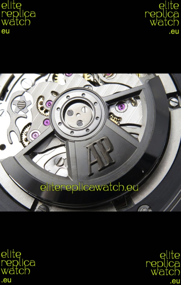 Machinery Layout exactly like Audemars Piguet 3126 Calibre Movement used in Authentic Audemars Piguet Offshore Watches built on Genuine Swiss 7753 Movement architecture with Functional stopwatch feature like the authentic