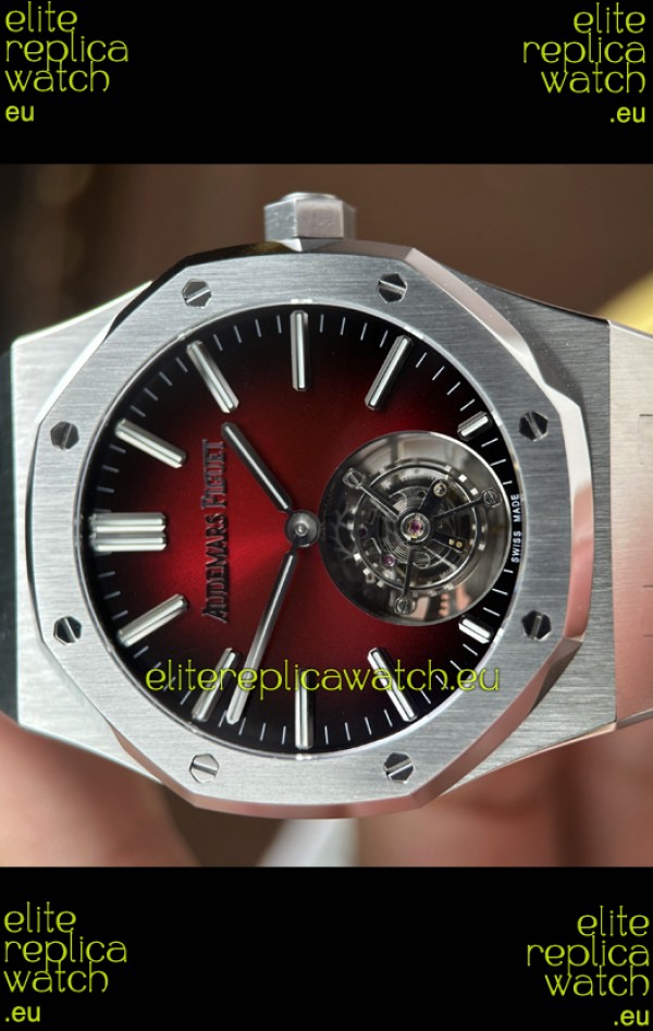Audemars Piguet Super Clone Royal Oak Flying Tourbillon 41mm Burgundy Dial Watch
