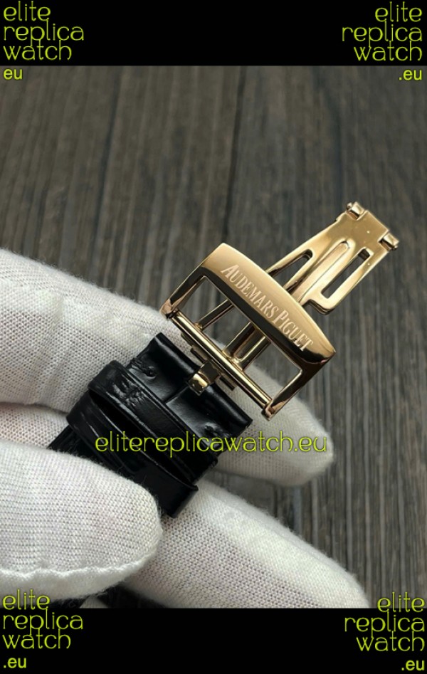 Genuine Leather Strap with AP Fold Buckle complete with Audemars Piguet Markings/Engravings