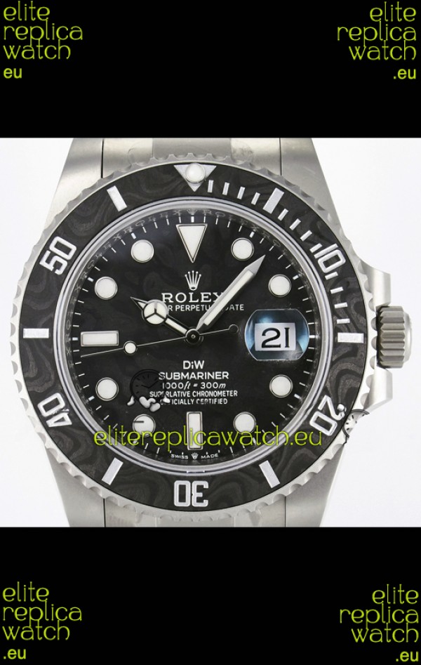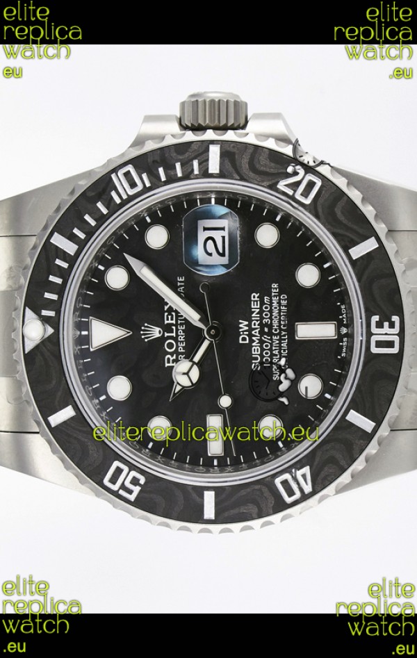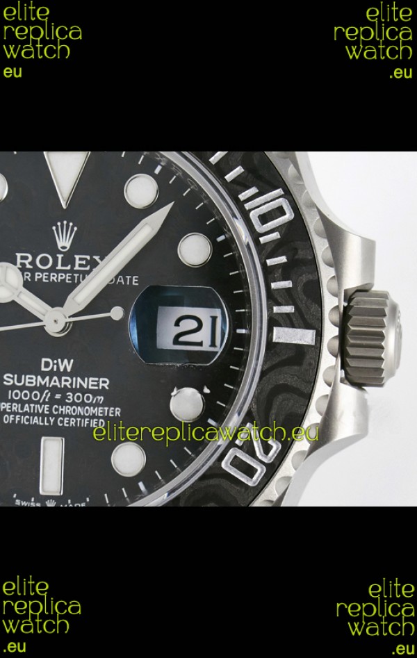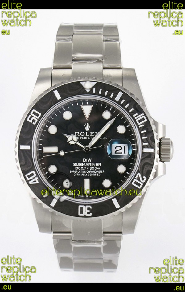Rolex Submariner DiW Sandblasted Steel Casing Carbon Fiber Bezel Watch Black Dial