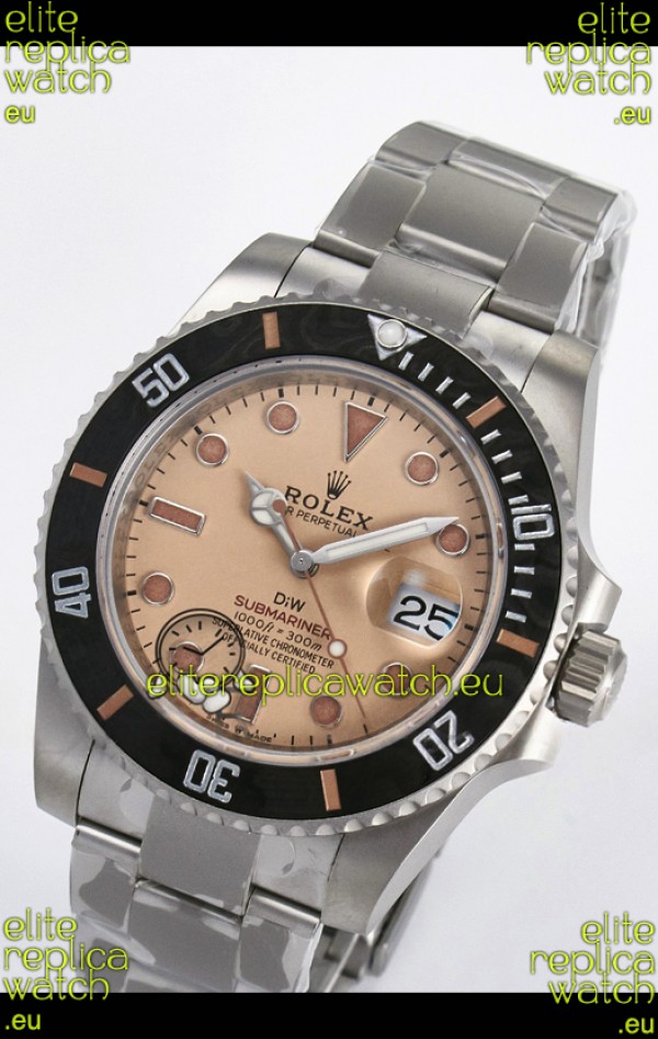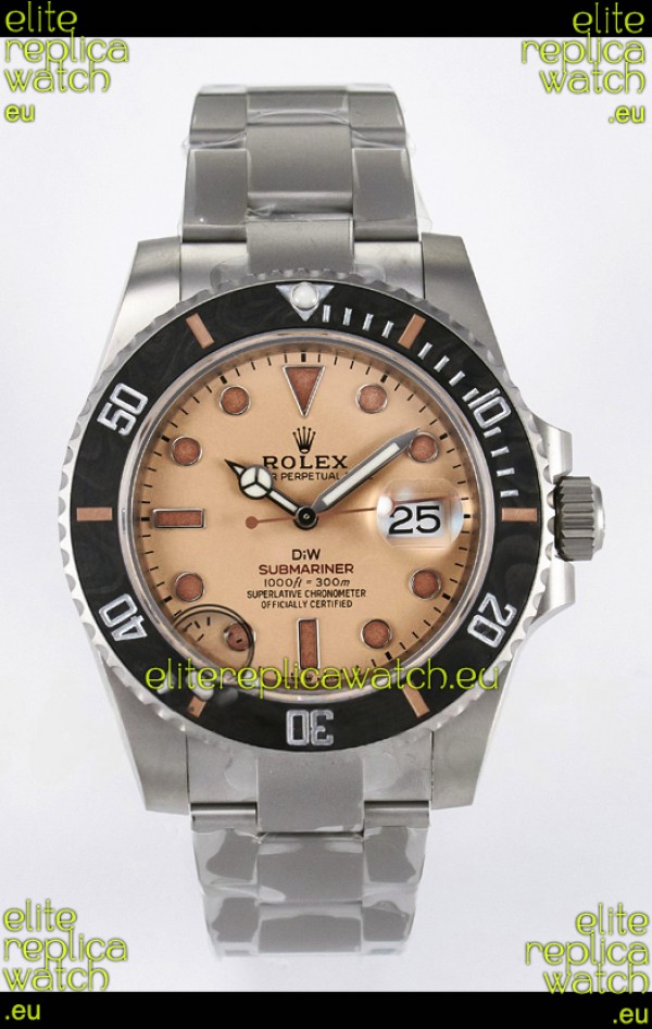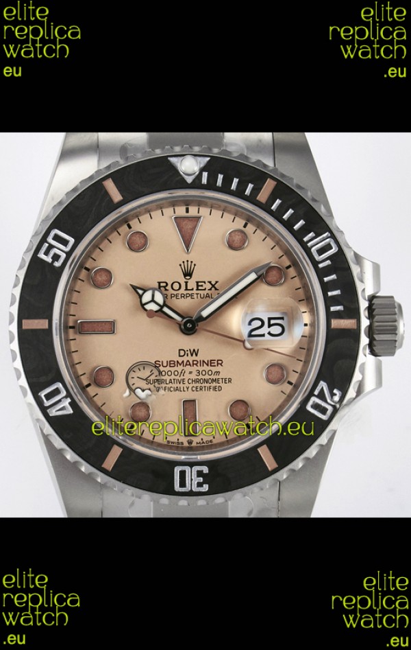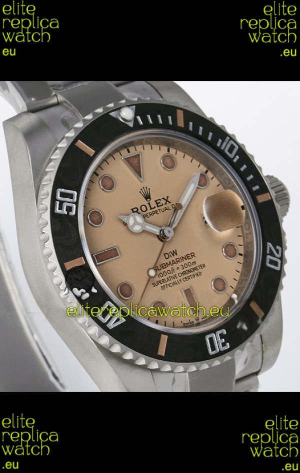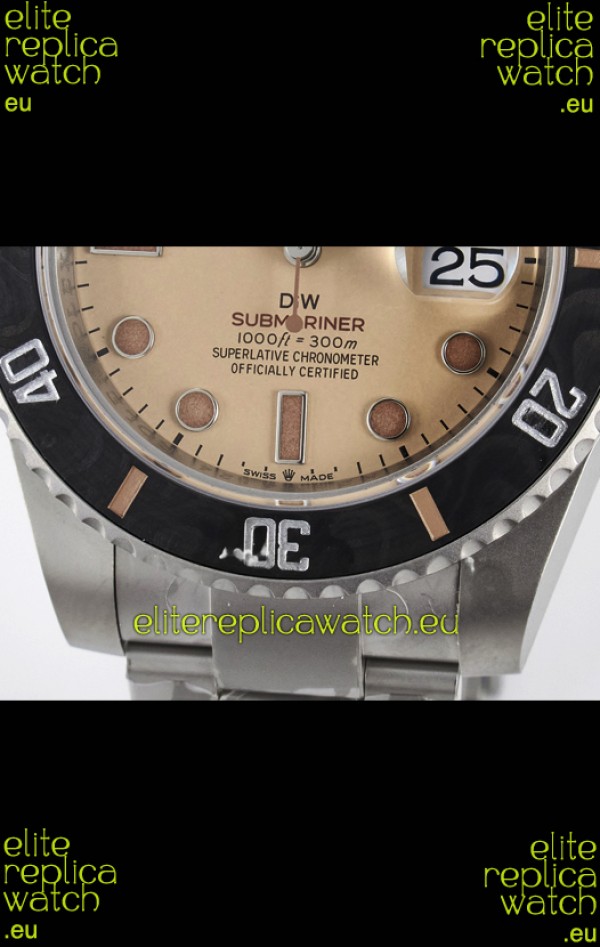 Rolex Submariner DiW Sandblasted Steel Casing Carbon Fiber Bezel Watch Beige Dial