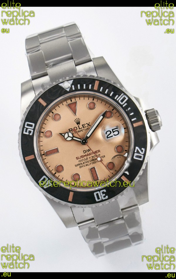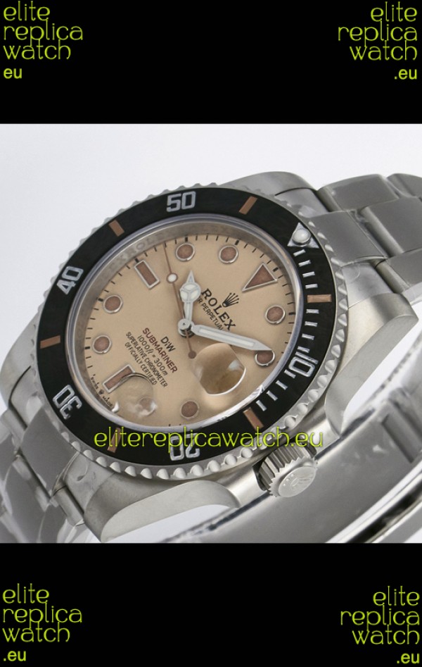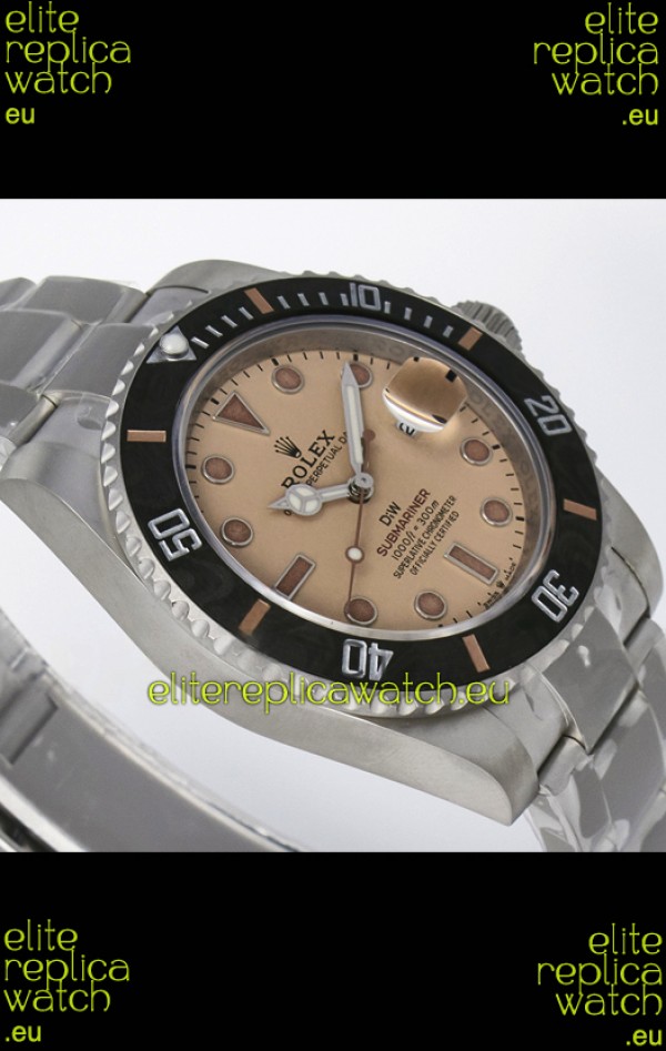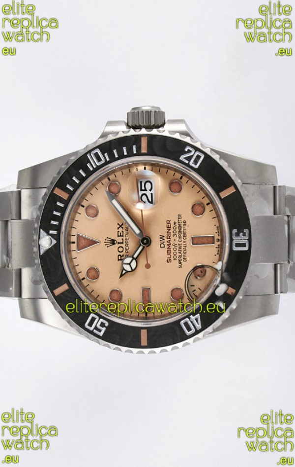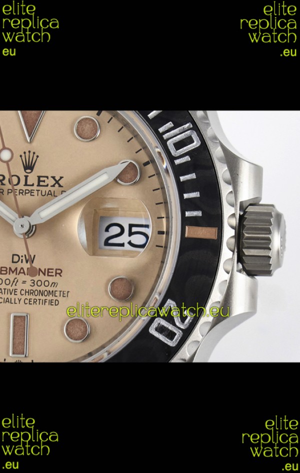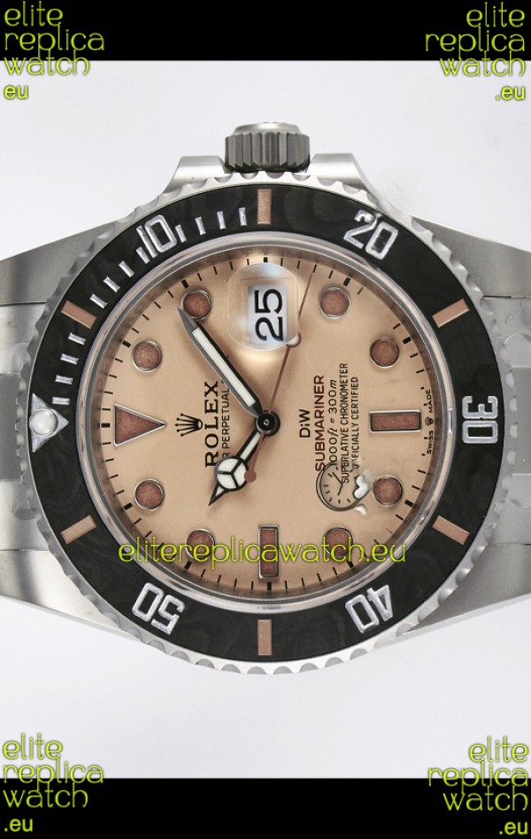 Rolex Submariner DiW Sandblasted Steel Casing Carbon Fiber Bezel Watch Beige Dial