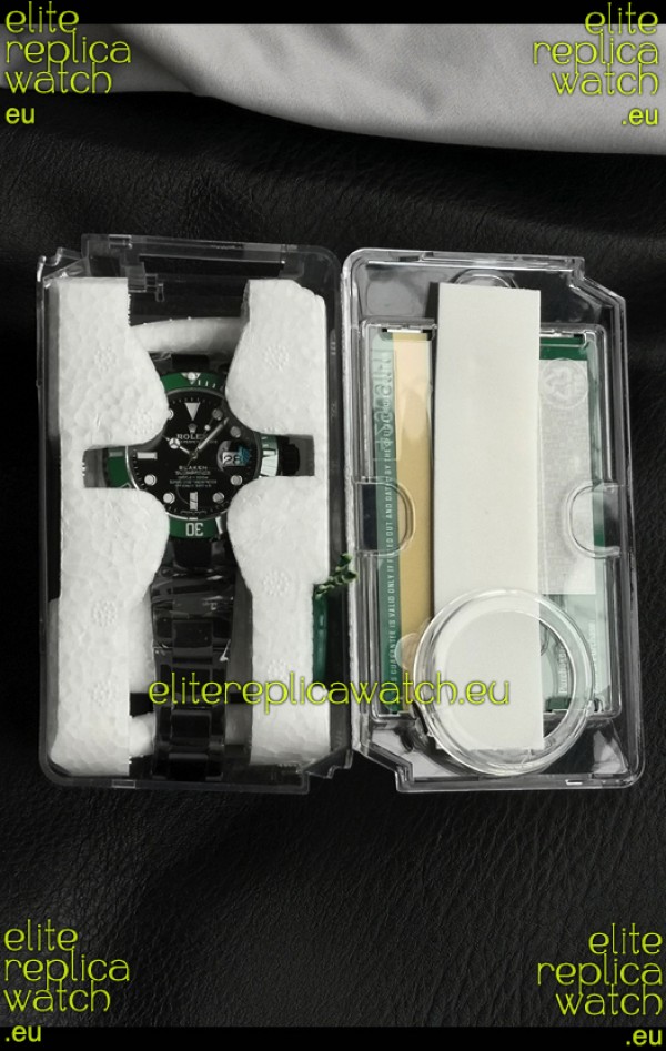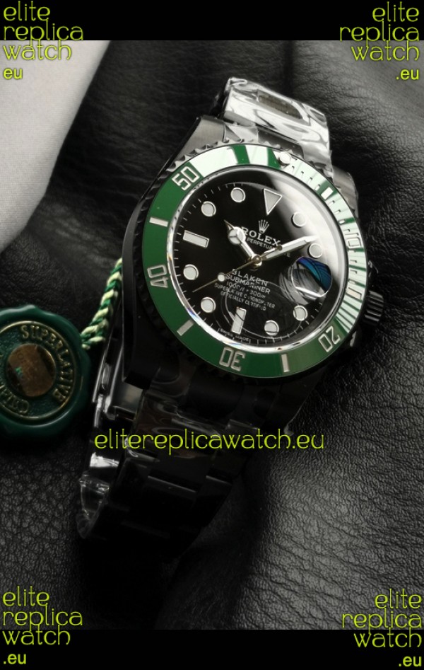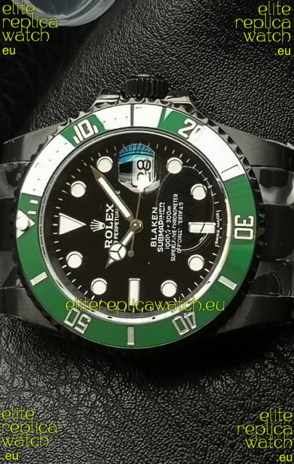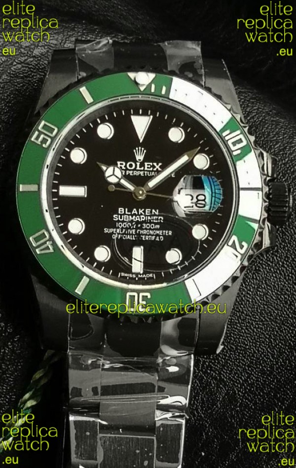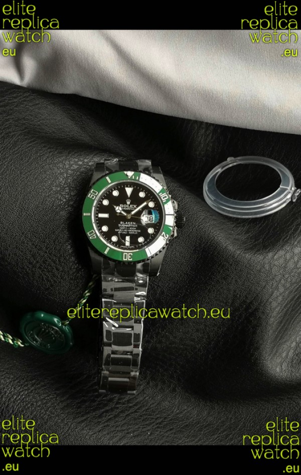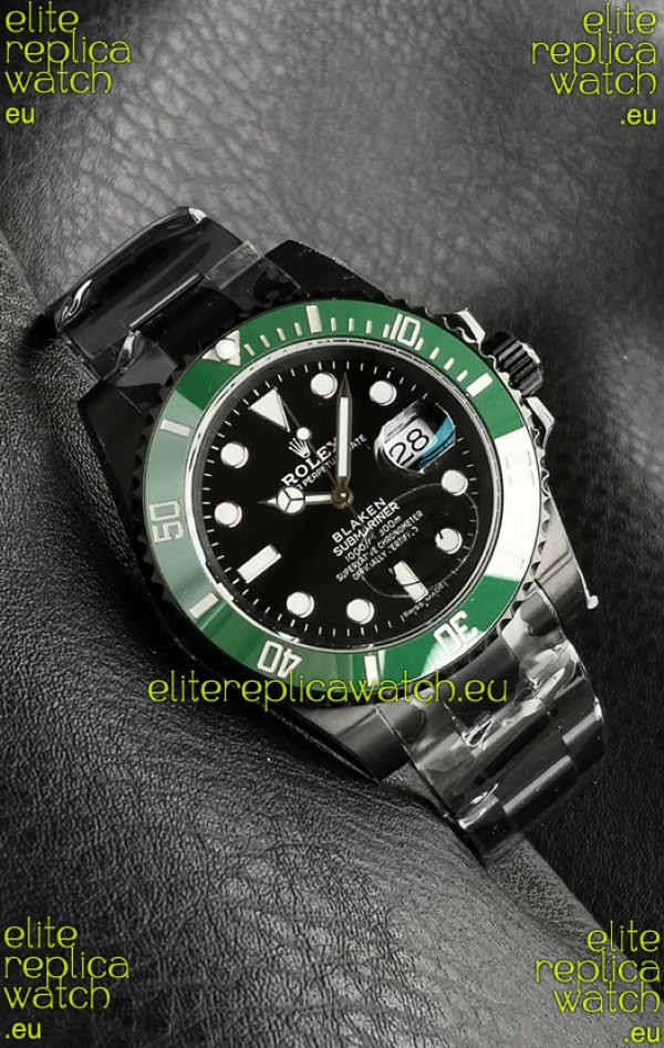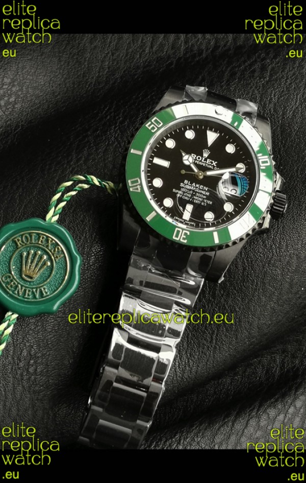 Rolex Submariner Blaken DLC Coated Swiss Replica Watch in Green Bezel