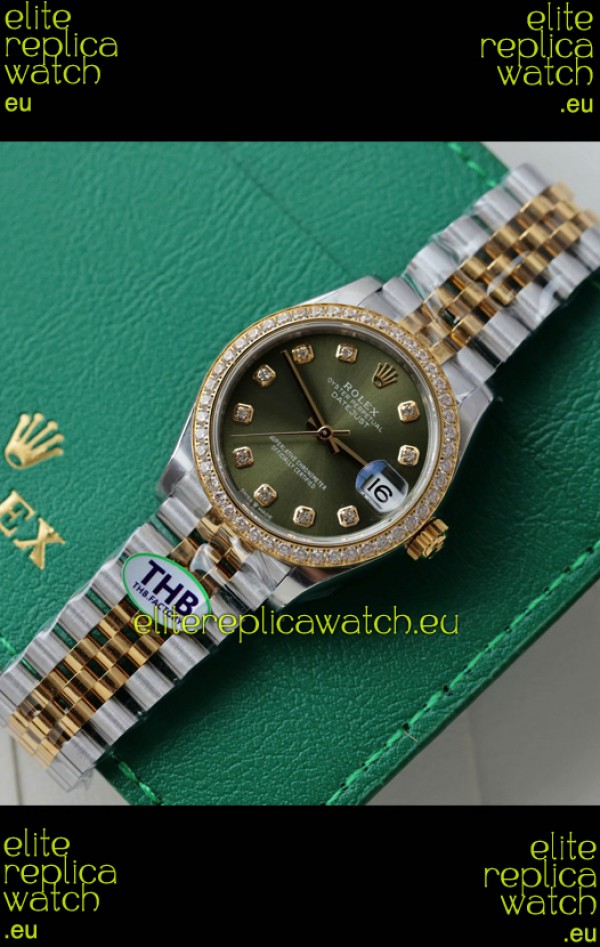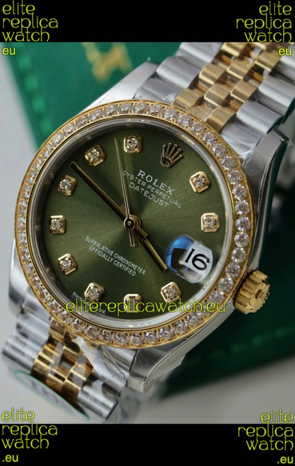 Rolex Datejust Cal.3235 Movement Super Clone Rose Gold 2 Tone 31MM Green Dial Watch