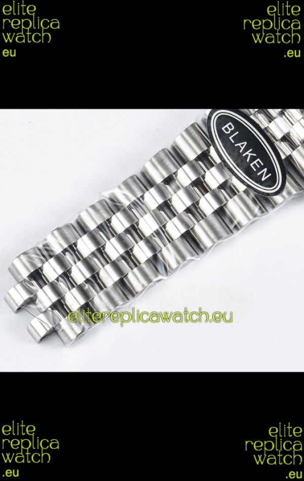 904L Stainless Steel Case as per the Orginal with Metallic Blue Ceramic Inserts.