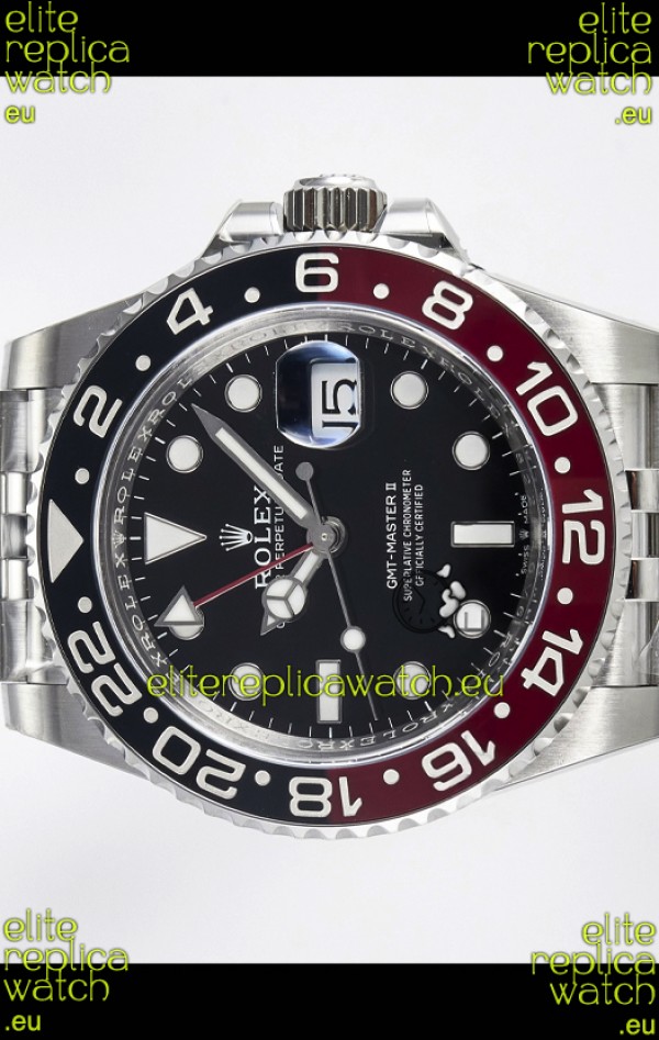 The Best Rolex GMT Model Replicated up to Date. The First Rolex model to adopt a 904L Steel on Casing and Strap which is the same steel used by Rolex.