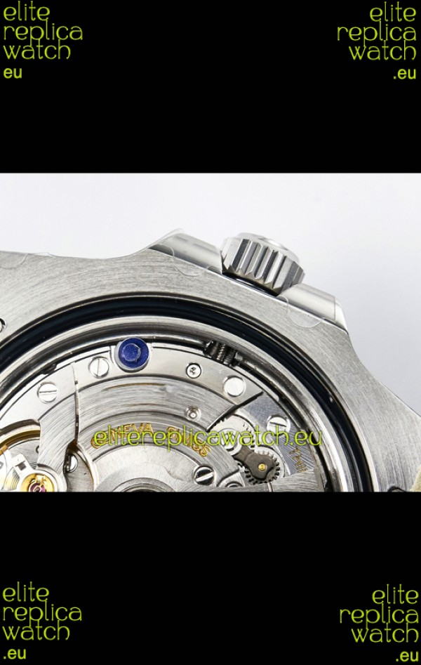 904L Stainless Steel Case as per the Orginal with Metallic Blue Ceramic Inserts.