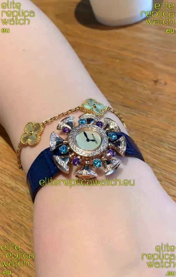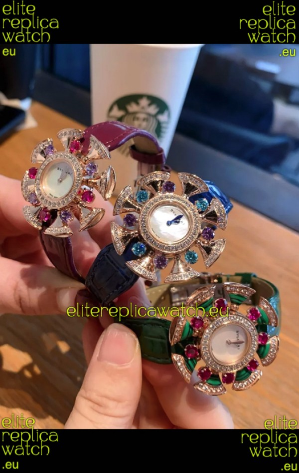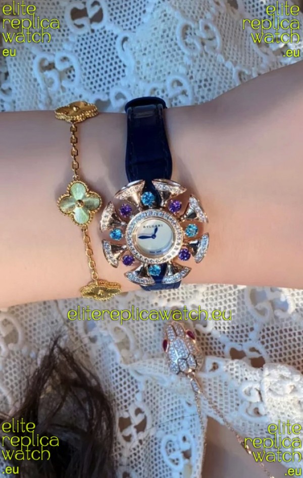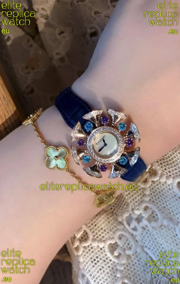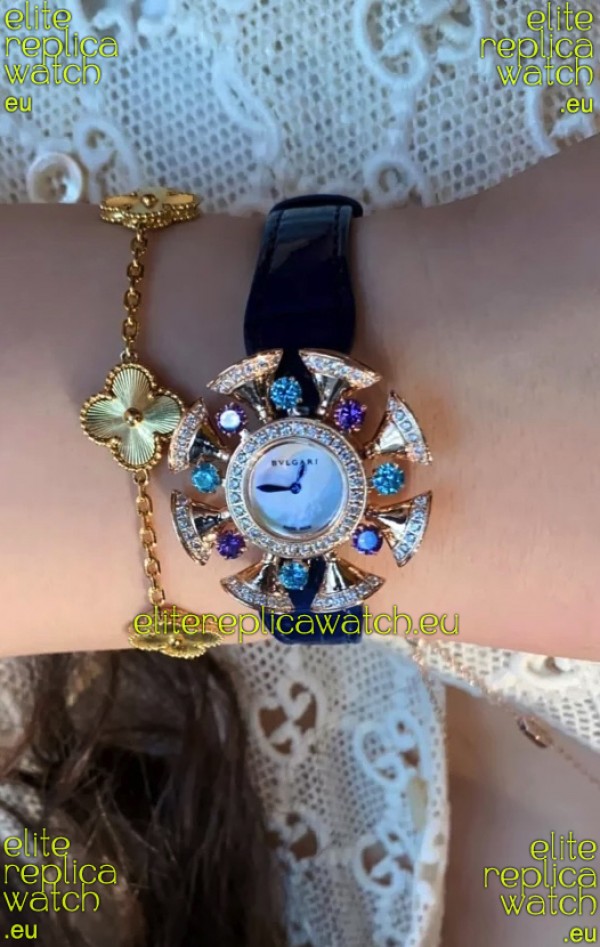 Bvlgari Divas's Dream Edition Watch in Rose Gold Casing - Diamonds Paved Bezel Swiss Replica