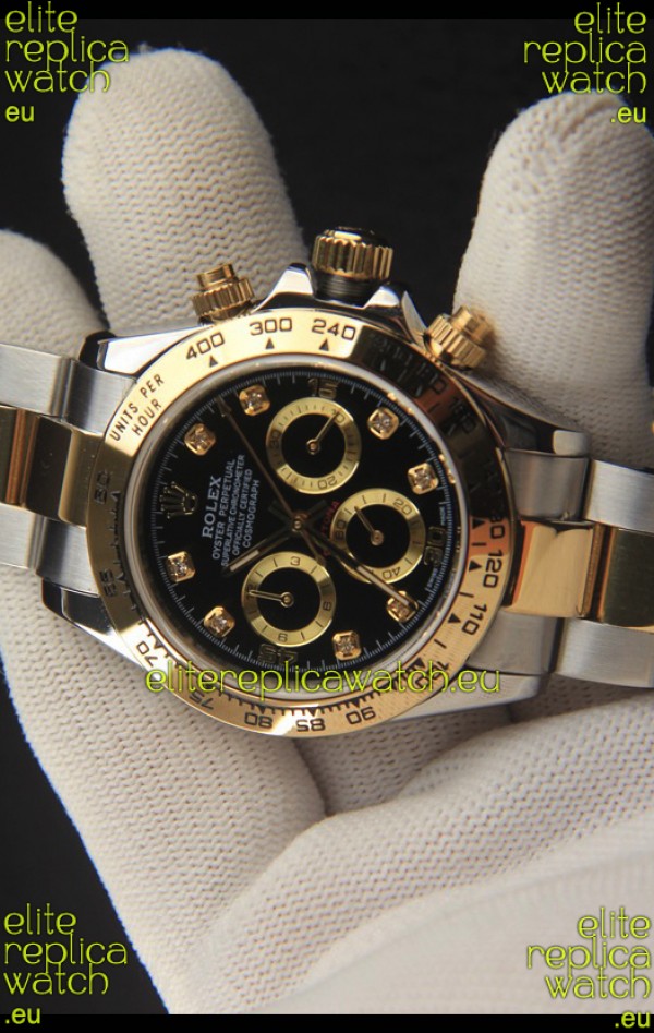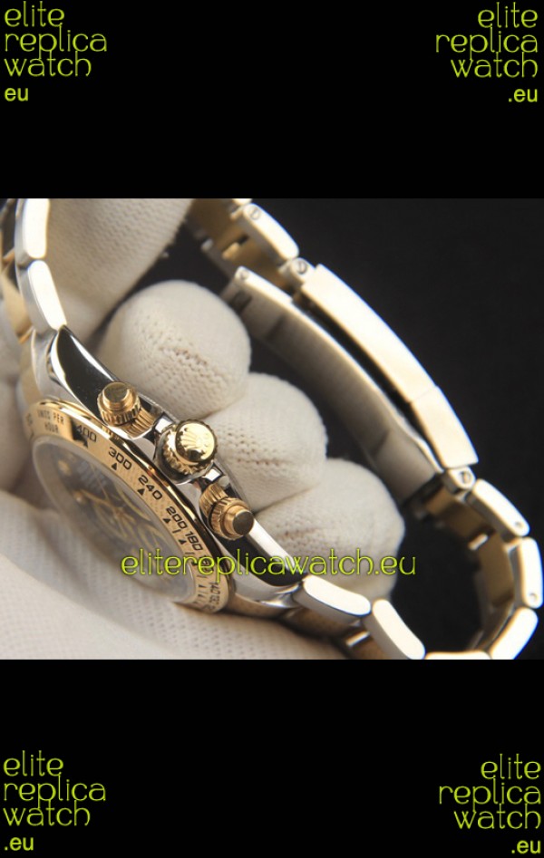 Rolex Daytona Japanese Movement Two Tone Gold Casing Watch in Black Dial