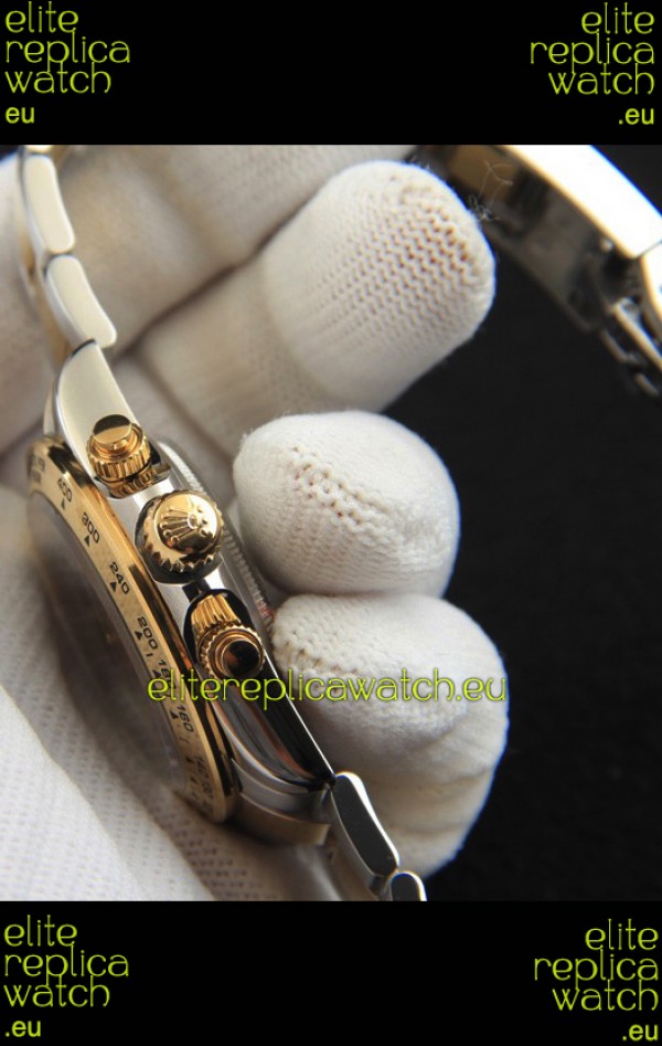 Rolex Daytona Japanese Movement Two Tone Gold Casing Watch in Black Dial