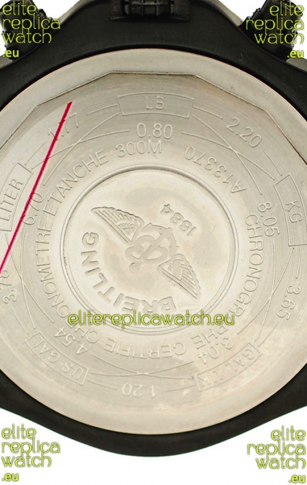 Strap: Genuine Rubber Strap with Breitling markings and engravings exactly like the Authentics