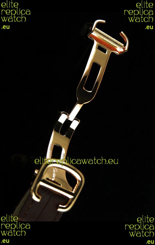 Genuine Leather Strap with Cartier Markings/Engravings and Double Folding Clasp Plated in 10 Microns Thick Pink Gold