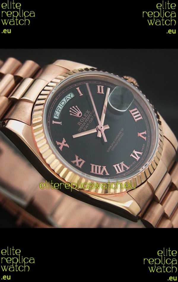 Watch name: Rolex Day Date Swiss Rose Gold Watch in Black Dial