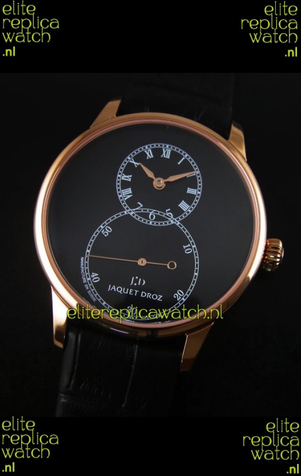 Locate and Purchase the best Jaquet Droz Grande Seconde Black Enamel Stainless Rose Gold Case in Black Dialat elitereplicawatch.eu