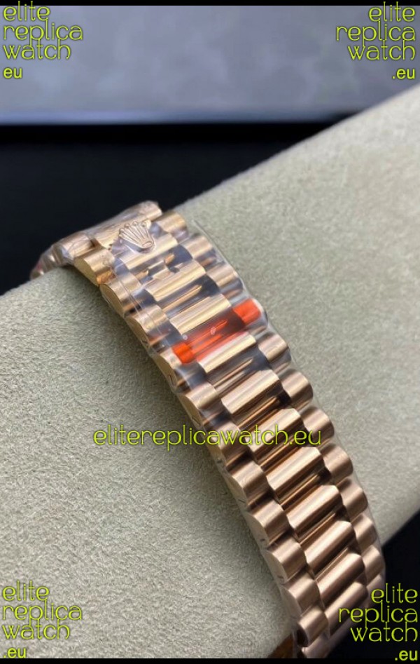 18K Rose Gold Plating on 904L Stainless Steel New Design President Strap with Folding Clasps complete with Rolex Markings and Engravings