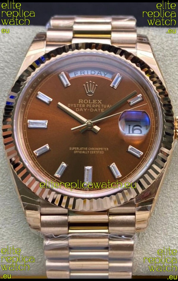 Rolex Day Date 40MM 228235 Rose Gold in Brown Dial 1:1 Mirror Replica Watch