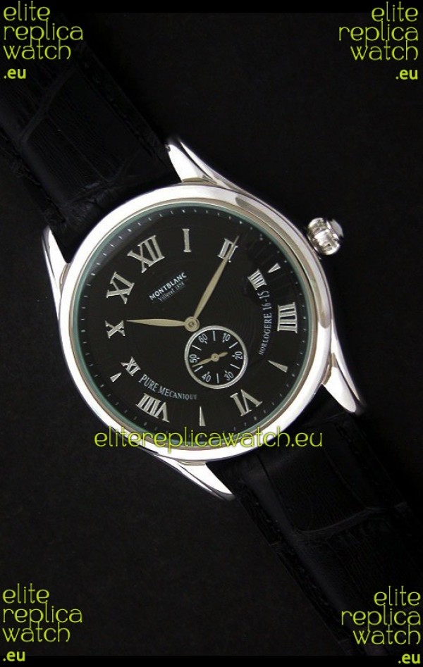Genuine Black Leather Strap with Mont Blanc Markings and Engravings
