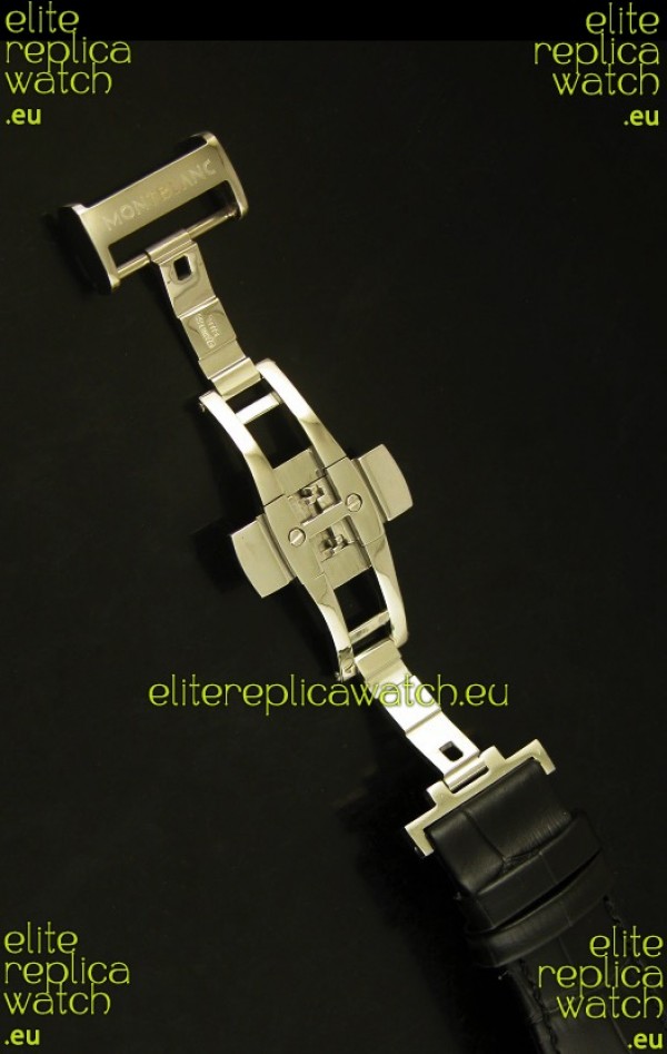Genuine Black Leather Strap with Deployant Clasps in Stainless Steel