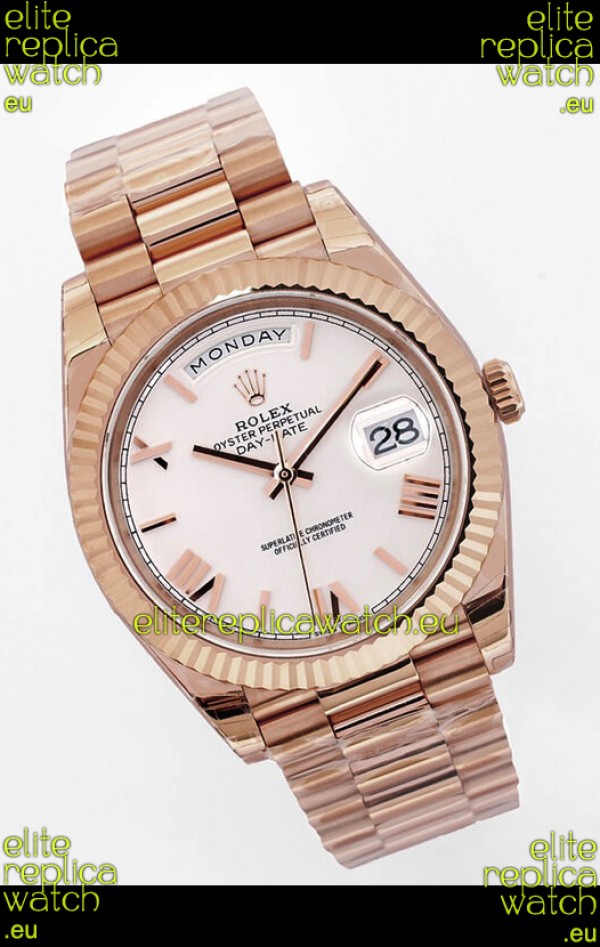 18K Rose Gold Plating on 904L Stainless Steel New Design President Strap with Folding Clasps complete with Rolex Markings and Engravings