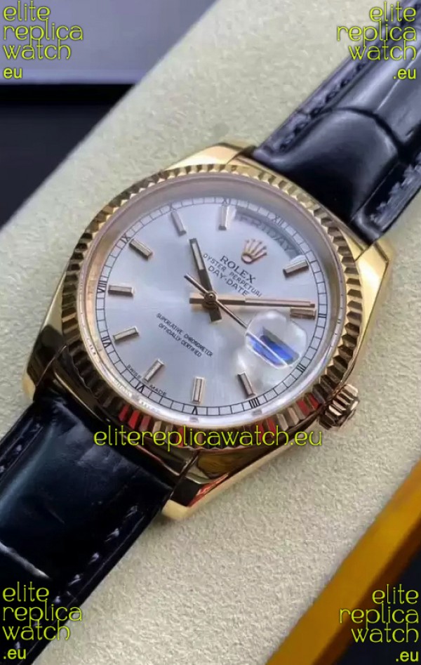 Rolex Day Date Yellow Gold Casing Watch in Steel Dial 36MM - 1:1 Mirror Quality